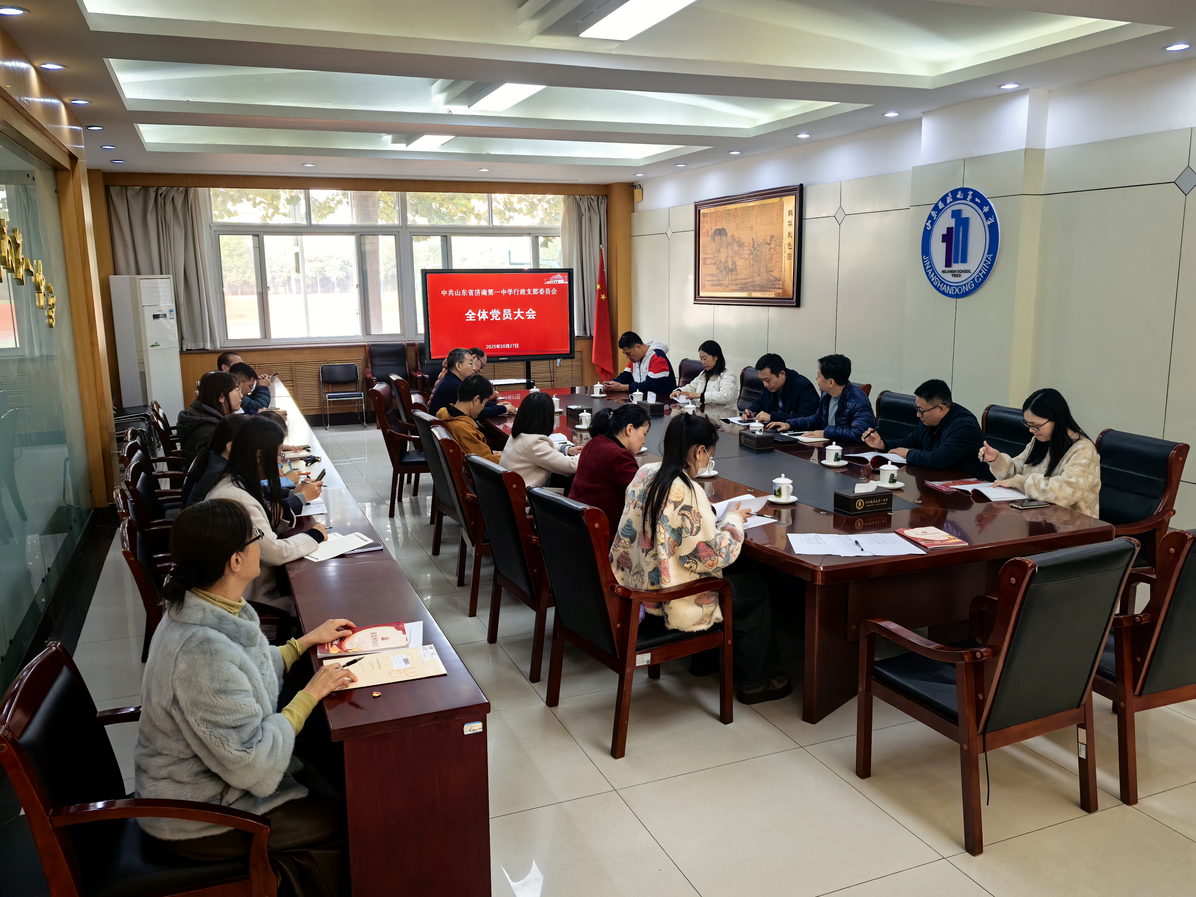 10月27日,济南一中行政党支部在弘德楼一楼会议室召开全体党员大会,并举行专题党课学习。党支部书记隋顺东为全体党员上专题党课。