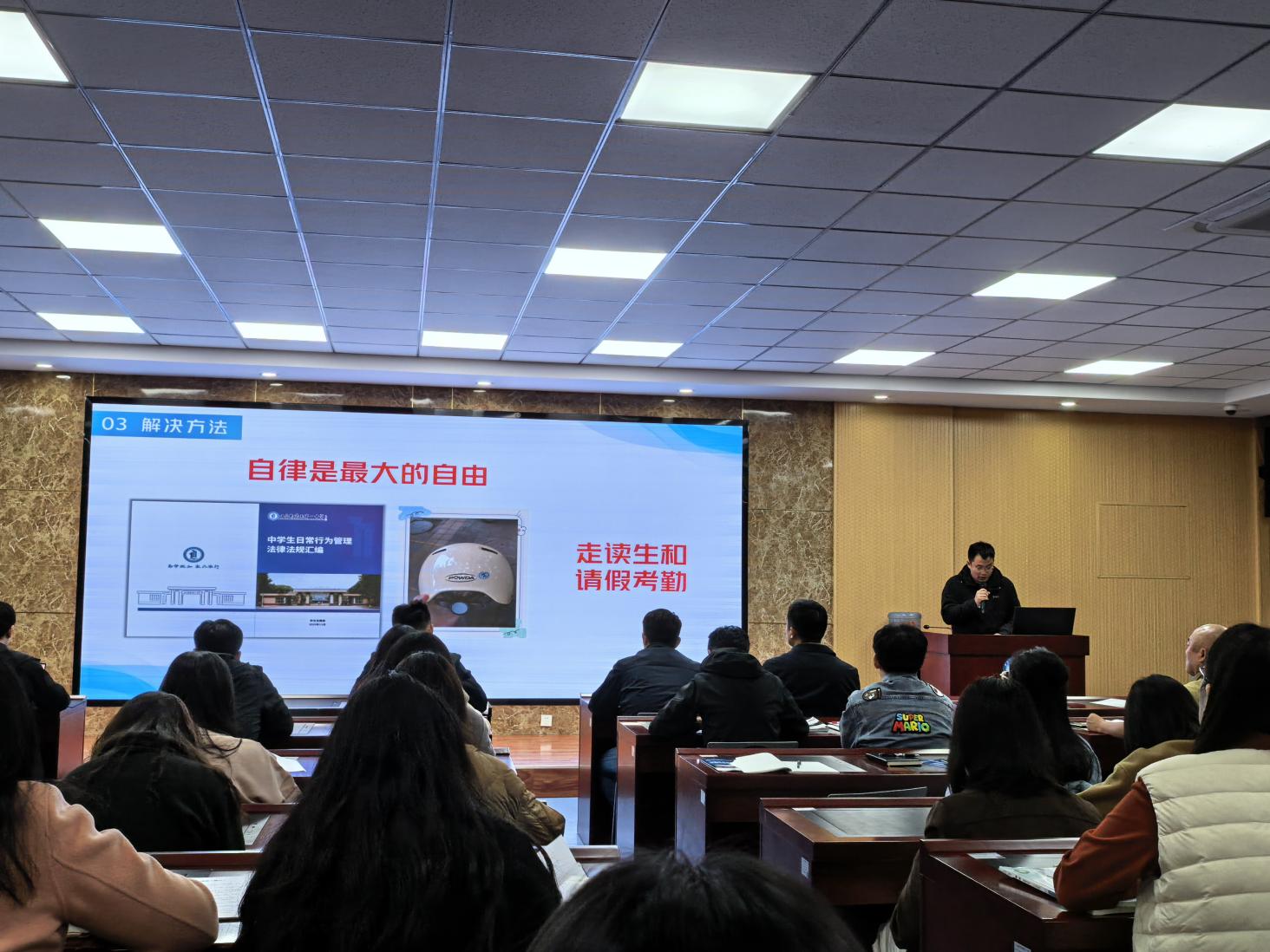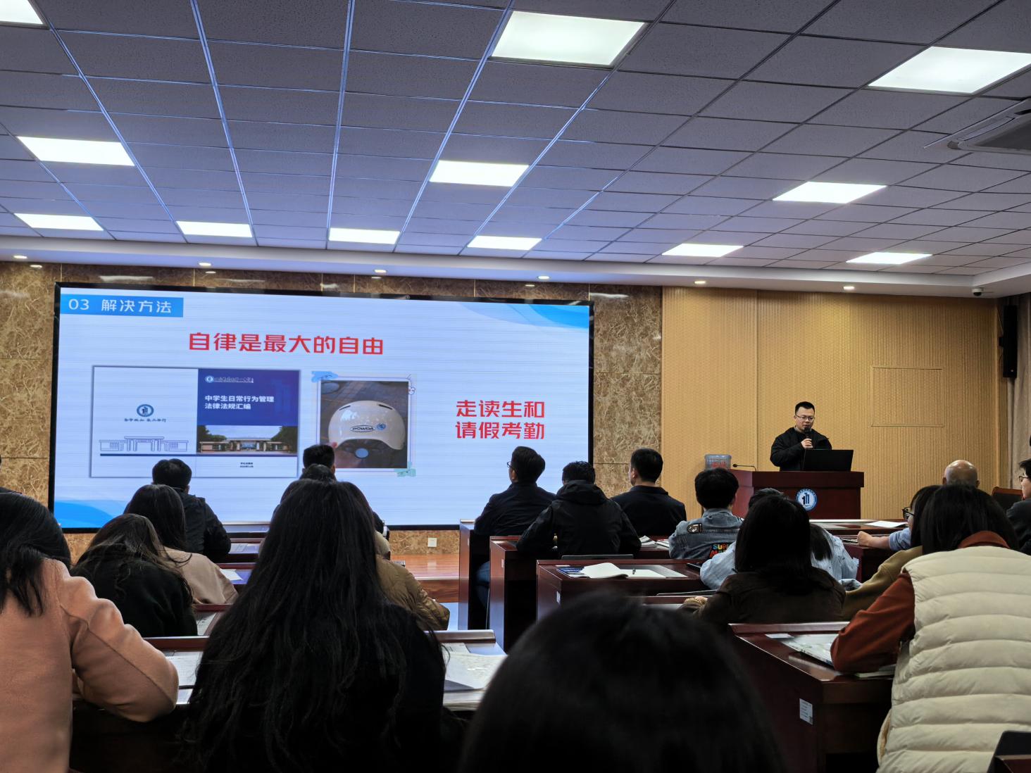 在教育理念交流环节,李忠文希望全体班主任“以成长型思维看待学生发展”,摒弃“救”与“治”的固化认知;打破对学生的标签化判断,引导学生向优秀榜样学习,勇敢面对成长挑战、从错误中汲取力量;帮助学生建立清晰规则体系,注重与学生平等沟通、正向引导,助力学生全面发展。
