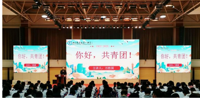 万胜国以“你好,共青团”为主题,系统阐述共青团的组织性质、体系架构与基本任务,从社会主义核心价值体系教育切入,深入解读共青团在中华民族伟大复兴进程中肩负的青春使命,引导学生深刻感悟共青团百年历程中的红色基因与时代责任。围绕学校团员义务与《济南一中团员规范》,他结合校园实际,从坚定理想信念、严守团章团纪、提升综合素养等方面,对学生的日常行为、学习互助、志愿服务、网络言行等提出具体规范要求,勉励同学们在言行中践行团员标准,展现先进风貌。
