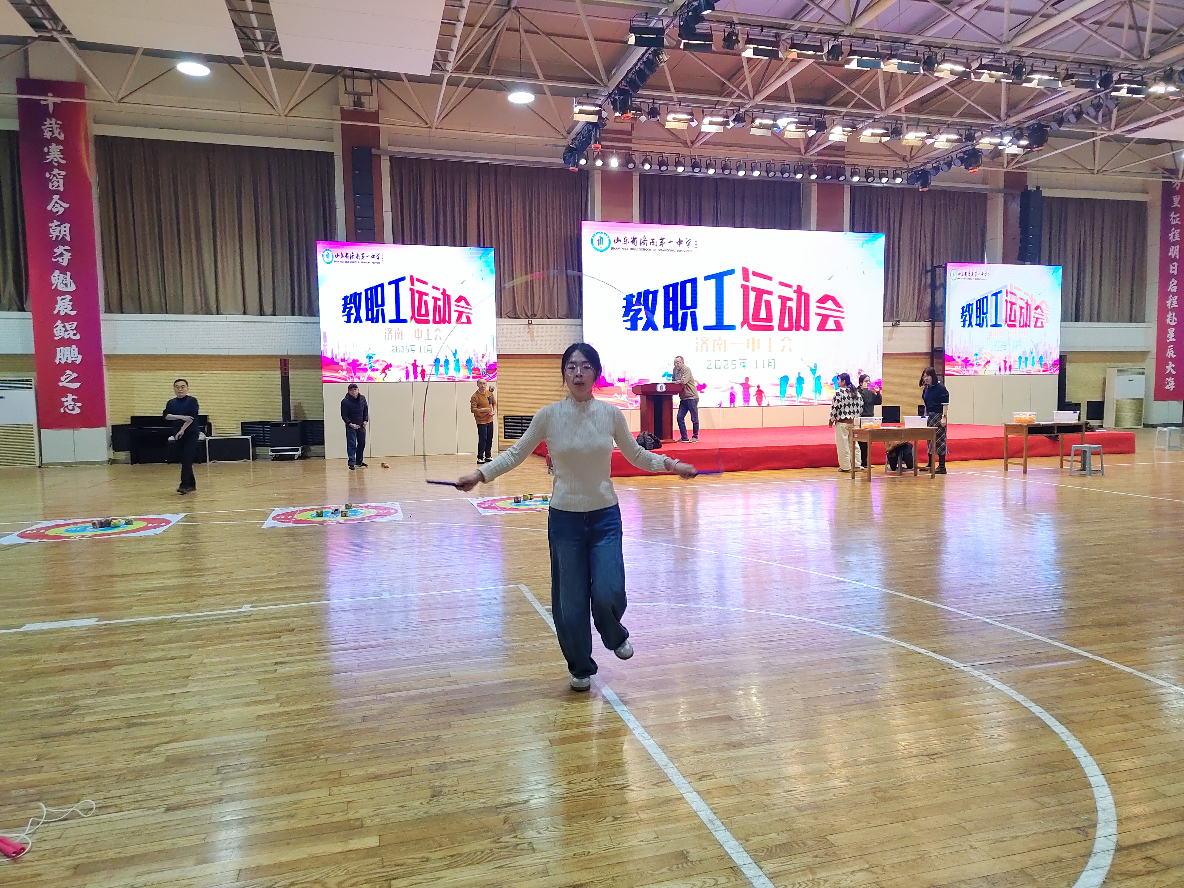 个人项目同样亮点频现。跳小绳赛场,每一次跳跃都是日常锻炼的积累;夹乒乓球项目中,选手专注神情与稳健动作赢得阵阵掌声;踢毽子、沙包投掷、投壶、定点投篮等项目各具特色,选手全力以赴,赛出水平与风格。赛场边,加油声、呐喊声、欢笑声交织,全员沉浸在欢乐和谐的氛围中。