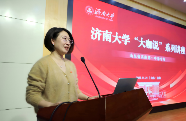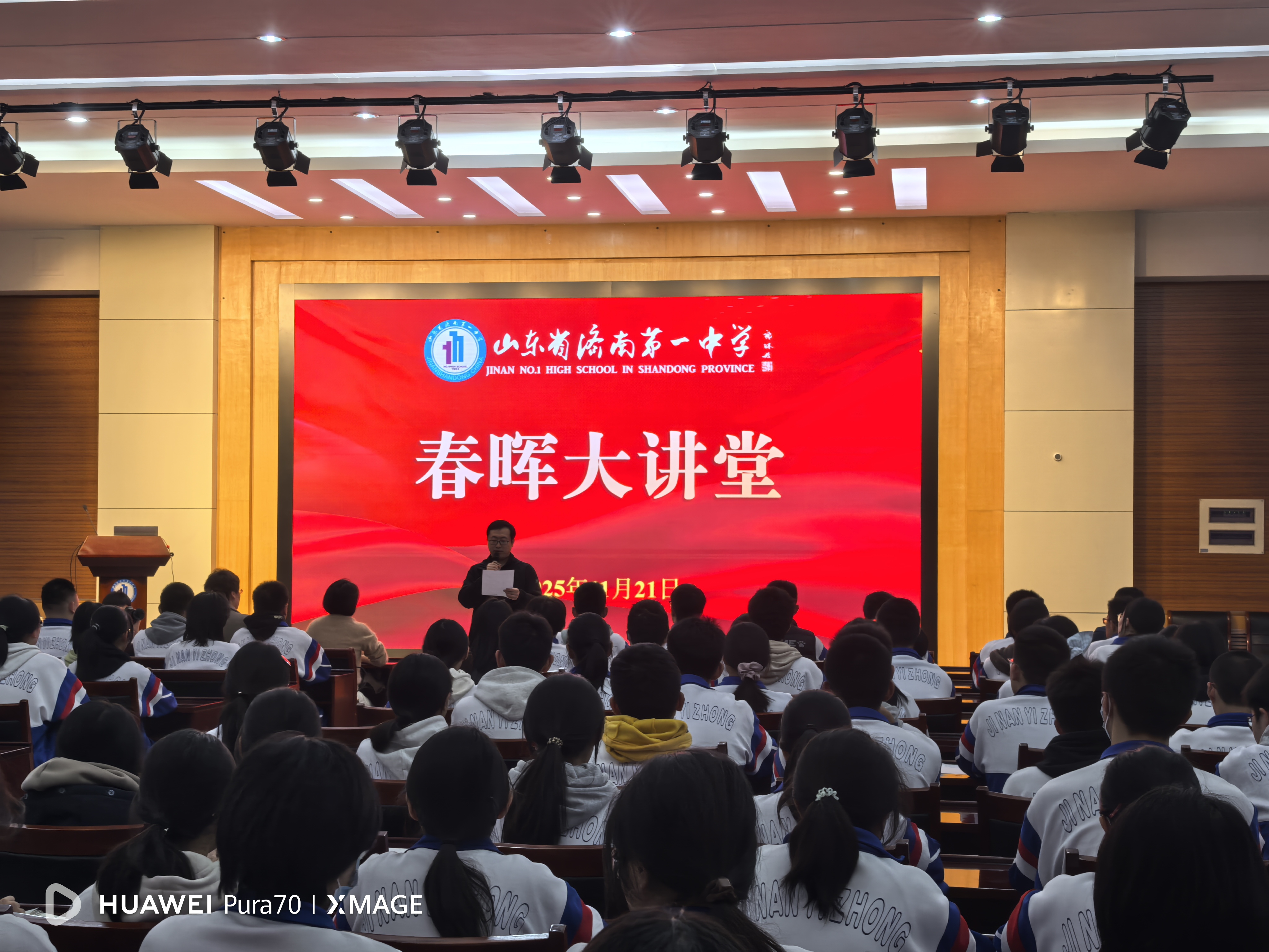 11月22日,济南一中举办第七期春晖大讲堂, 济南大学教育与心理科学学院副院长李开云带来“从大脑认识我们的学习”主题心理讲座,济南大学教务处副处长、招生办公室副主任郝晓艳出席,2025级全体班主任和学生听讲,年级主任王祥恒主持