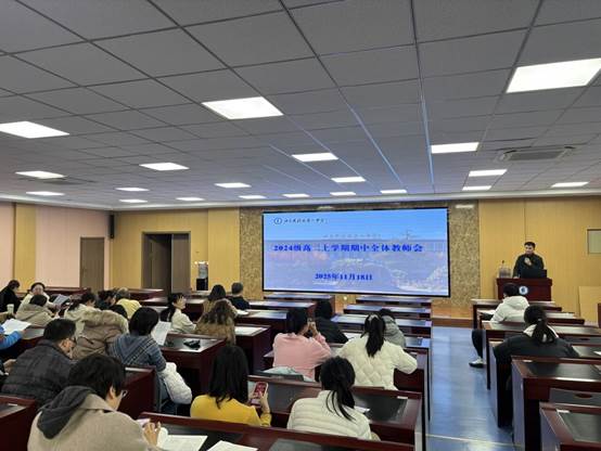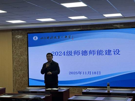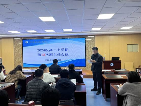 11月18日,济南一中在道德讲堂组织召开2024级高二上学期期中总结会暨全体教师会,年级主任周贤东主持。