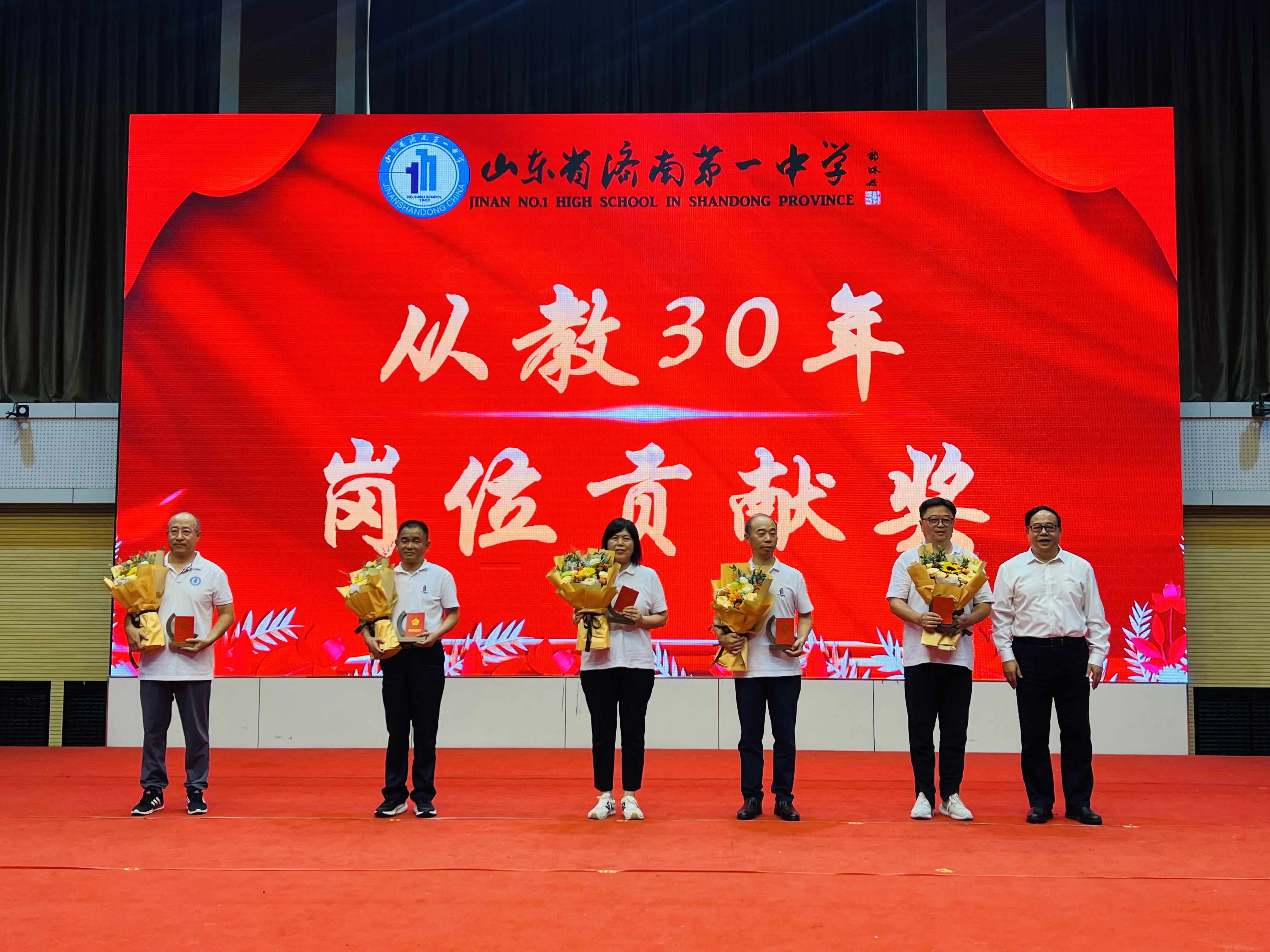 从教三十年是职业生涯的重要节点。校长苗翠强为今年工作满三十周年的五位教师颁发纪念奖杯和证书,致敬他们对教育事业的坚守。