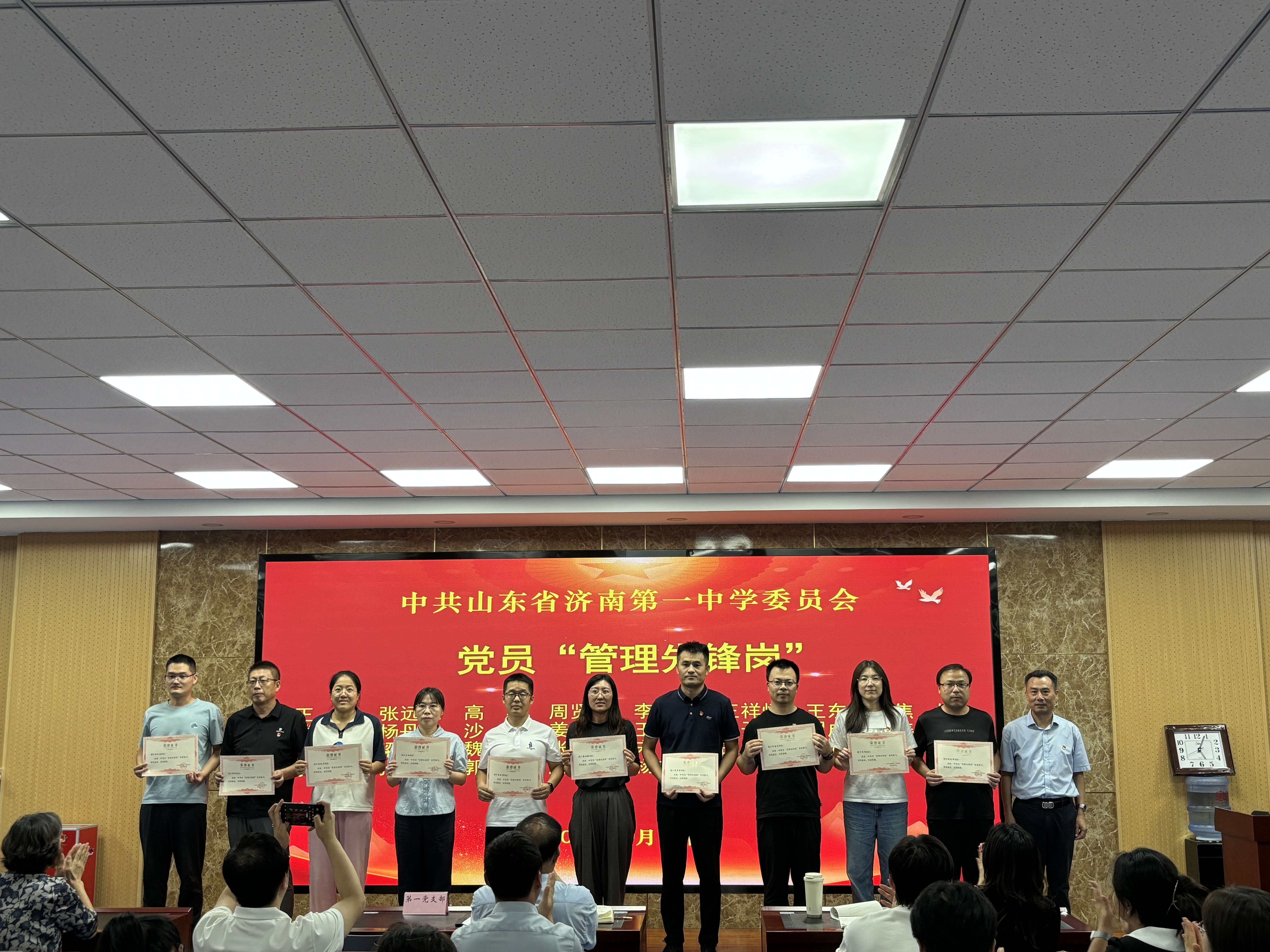 郑玉香向受表彰党员表示热烈祝贺,并号召全体党员以先进为榜样,“时时处处事事走在前、当先锋”,持续发挥党员先锋模范作用。学校党委将以“五力双全”党组织建设为引领,紧扣“1235”清廉学校创建思路,推动党建工作与教育教学深度融合,努力打造“目标可见、温度可感、未来可期”的良好教育生态,为济南一中教育教学高质量发展谱写更加绚丽的篇章。