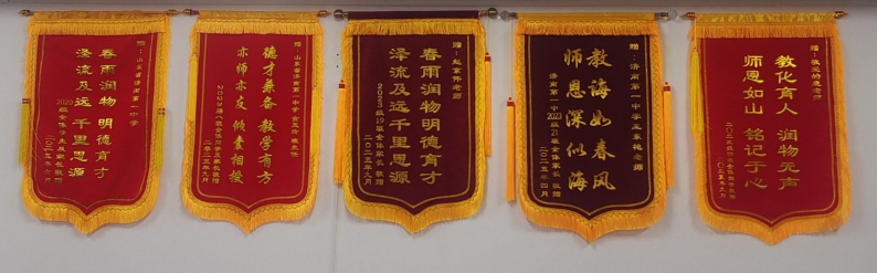 高三4班全体学生将写有“教化育人,润物无声;师恩如山,铭记于心”的锦旗送到班主任老师鹿鸣手中,表达对老师悉心教导的诚挚谢意。8班家长则对班主任老师金玉玲长期无微不至的关怀表达高度赞誉。19班家委会代表全体家长,将“春雨润物明德育才,泽流及远千里思源”十六字烫金锦旗交到班主任老师赵京伟手中,以此致敬老师的辛勤耕耘与无私奉献。