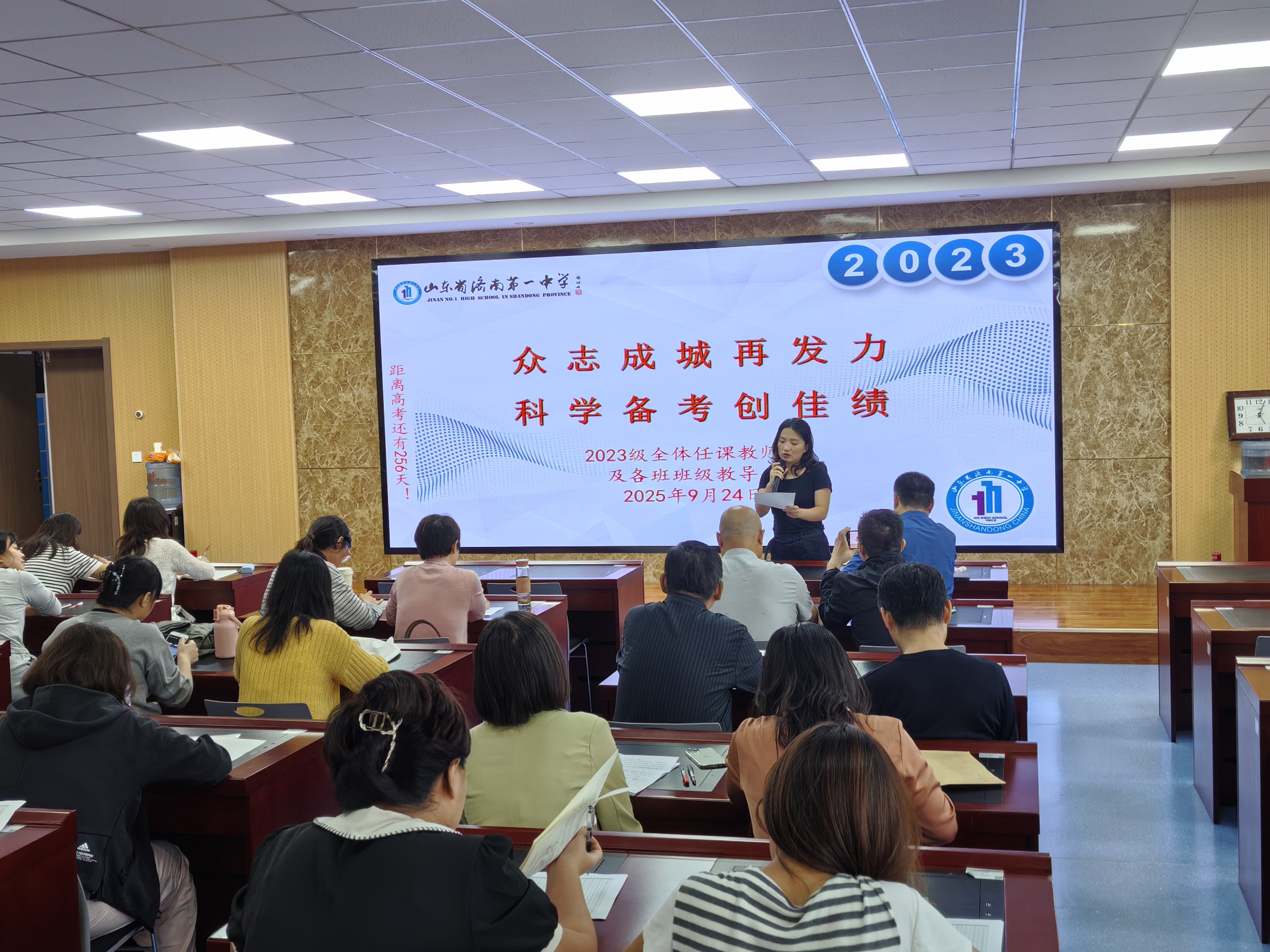 9月24日,济南一中2023级在格物楼四楼道德讲堂召开新学期第一次全体教师大会暨师德师风建设专题会,高三年级副主任王东艳主持。