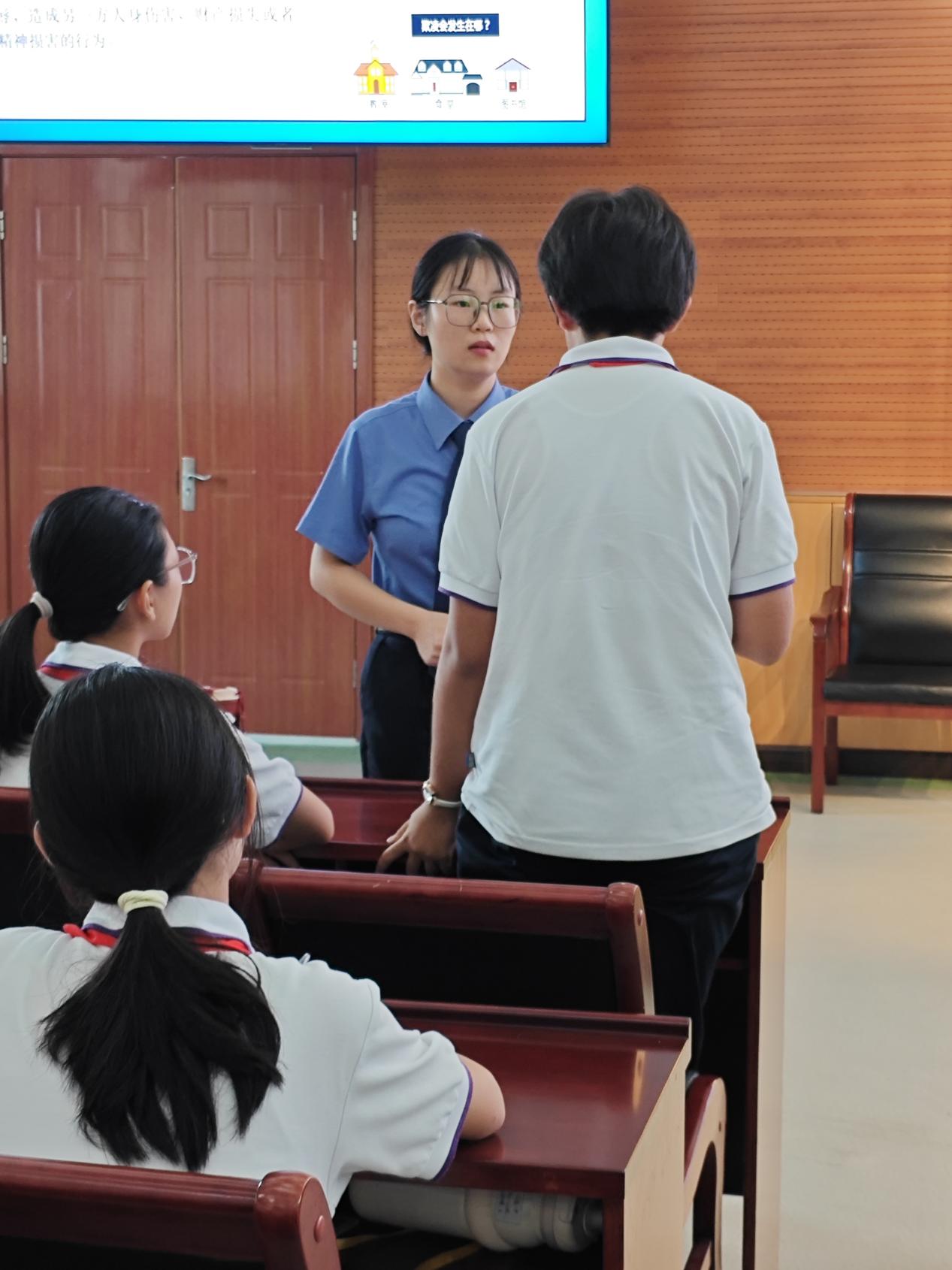在核心环节“校园霸凌讲解与应对”中,王燕先明确校园霸凌定义,助力同学们分辨“玩笑”与“霸凌”界限,再深入剖析其多重危害。讲解中,她多次与学生互动,同学们踊跃参与,现场掌声不断,气氛热烈。