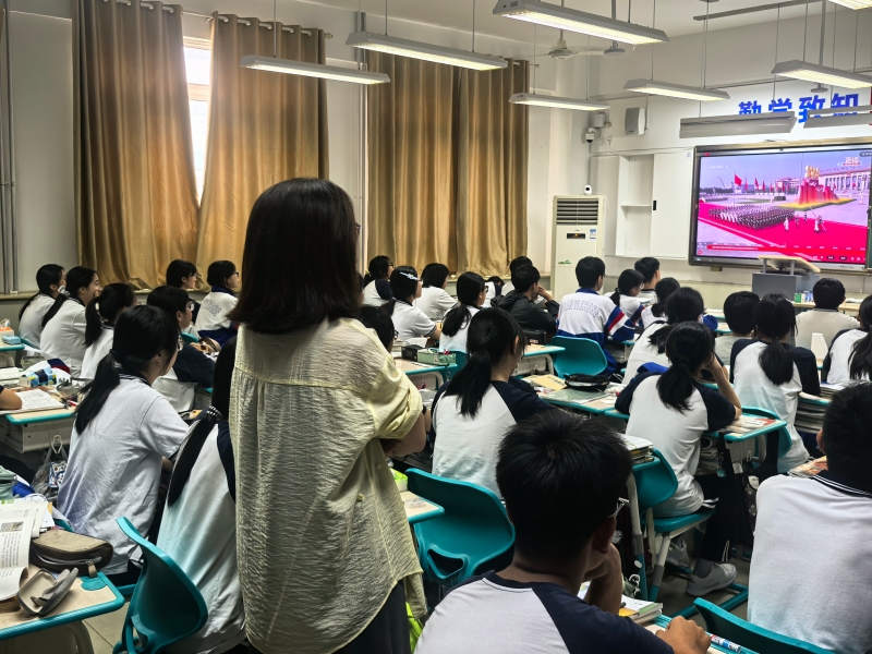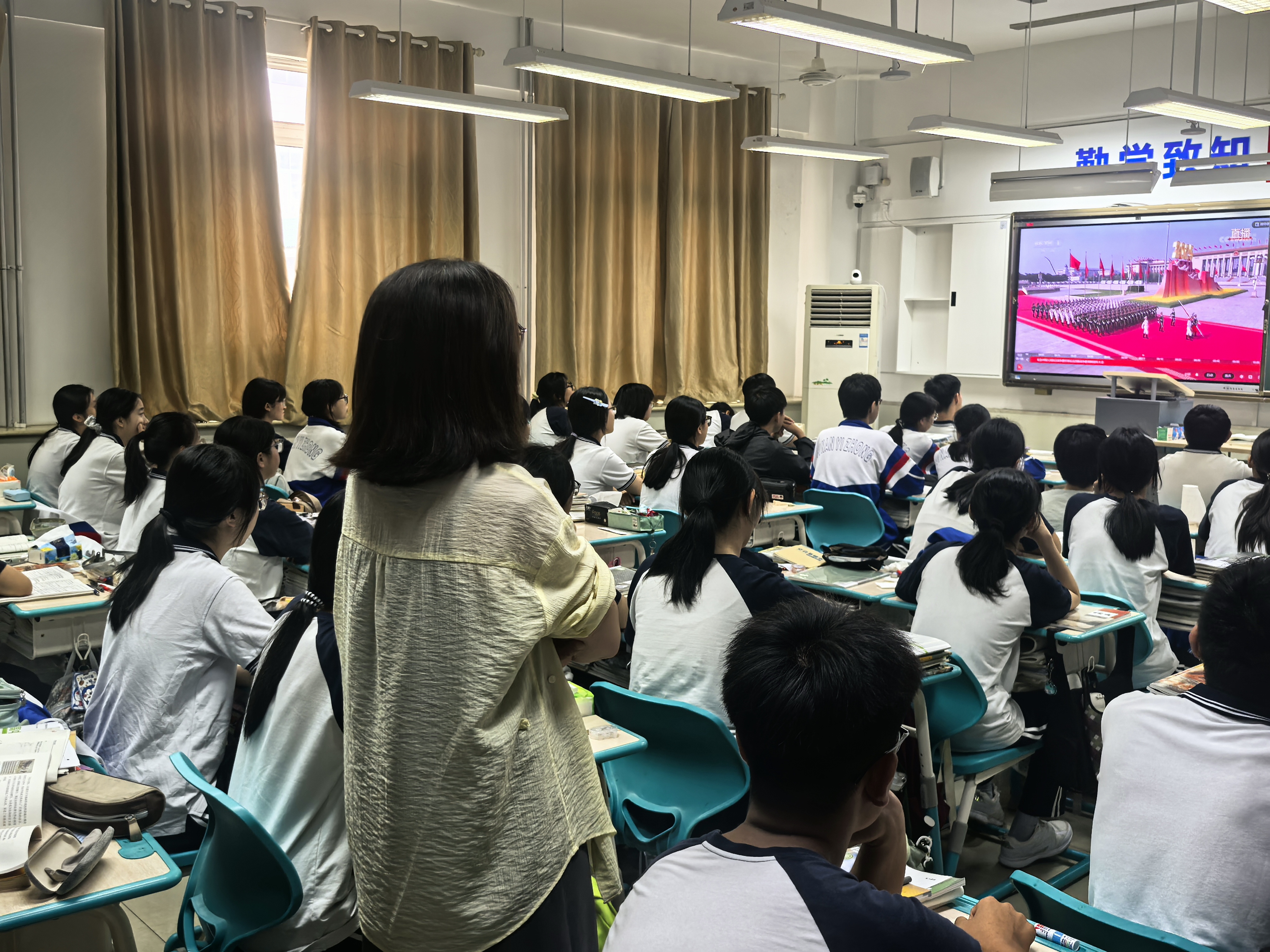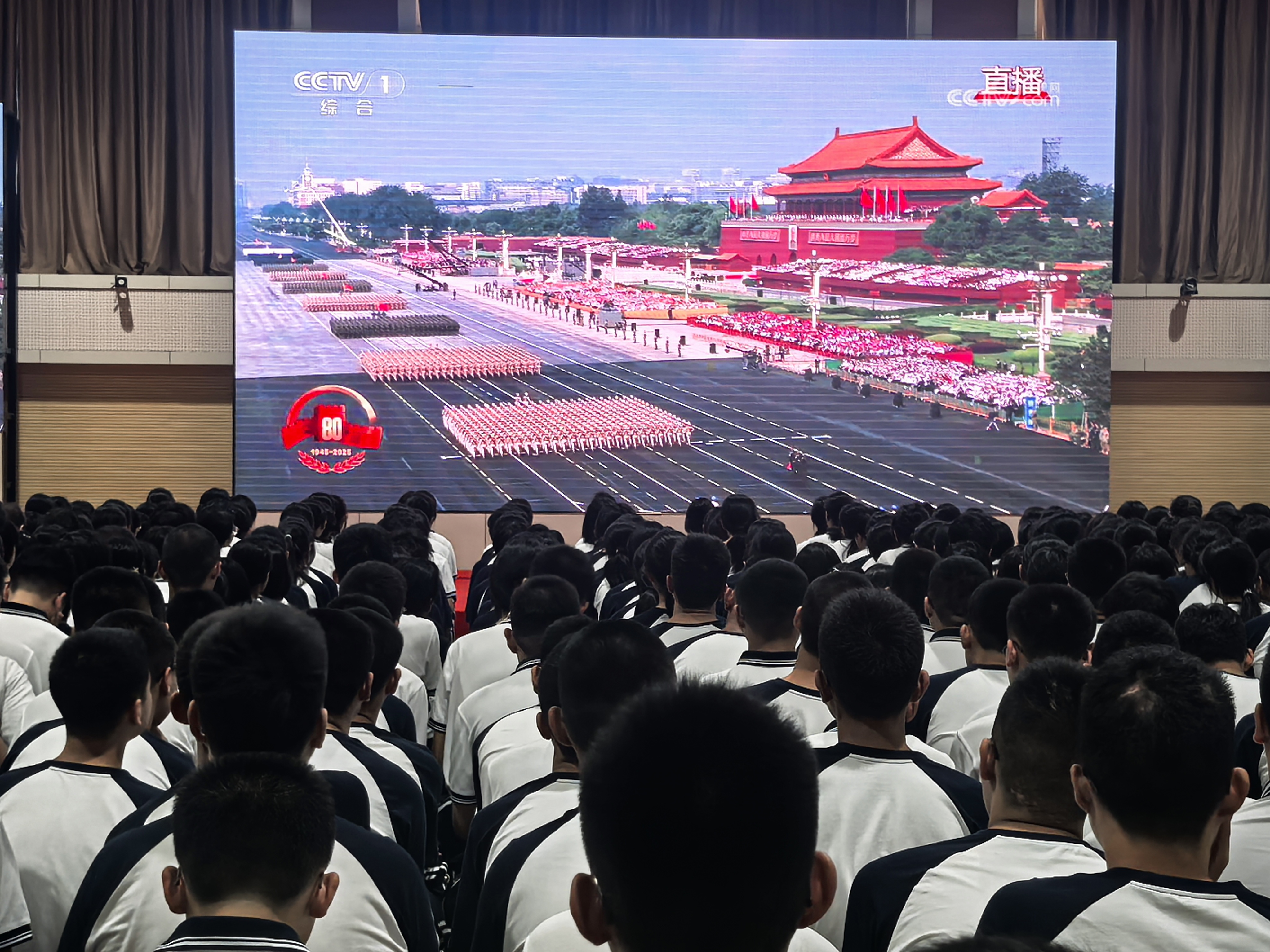 上午9时,全校师生集中收听收看纪念中国人民抗日战争暨世界反法西斯战争胜利80周年大会直播盛况。观看直播后,我校师生倍感振奋,反响热烈。新时代国防和军队建设的辉煌成就,令人无比自豪,极大地激发了全校师生的家国情怀与民族自信。