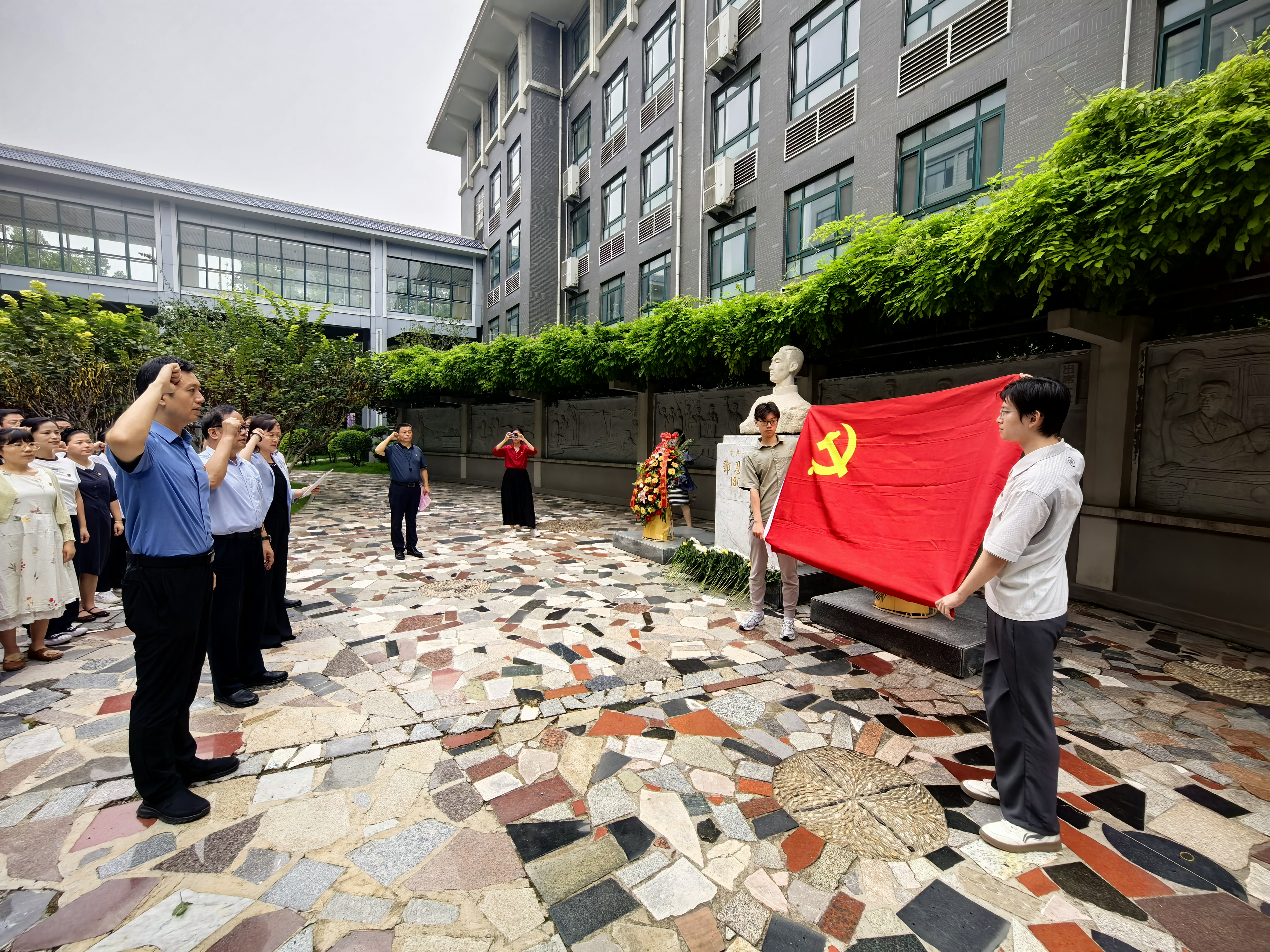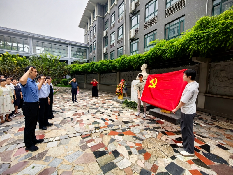 默哀毕,全体党员面对党旗,高举右拳庄严宣誓。铿锵誓言展现了党员教师坚守教育初心、担当育人使命的坚定信念。宣誓完毕后,全体人员合影留念,记录这一具有特殊意义的时刻。