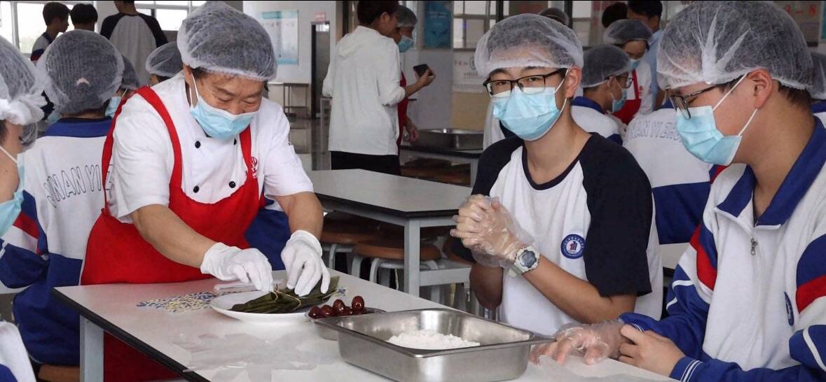学生分组进行粽叶处理、包粽竞赛和“一举高粽”挂件制作,锻炼动手能力,传递对高三学子的美好祝愿。