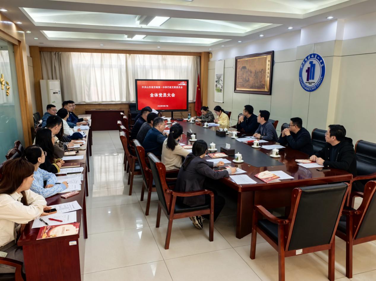 3月17日,济南一中行政党支部在弘德楼一楼会议室召开党员大会,学习贯彻党的二十届四中全会精神。党支部书记隋顺东主持。