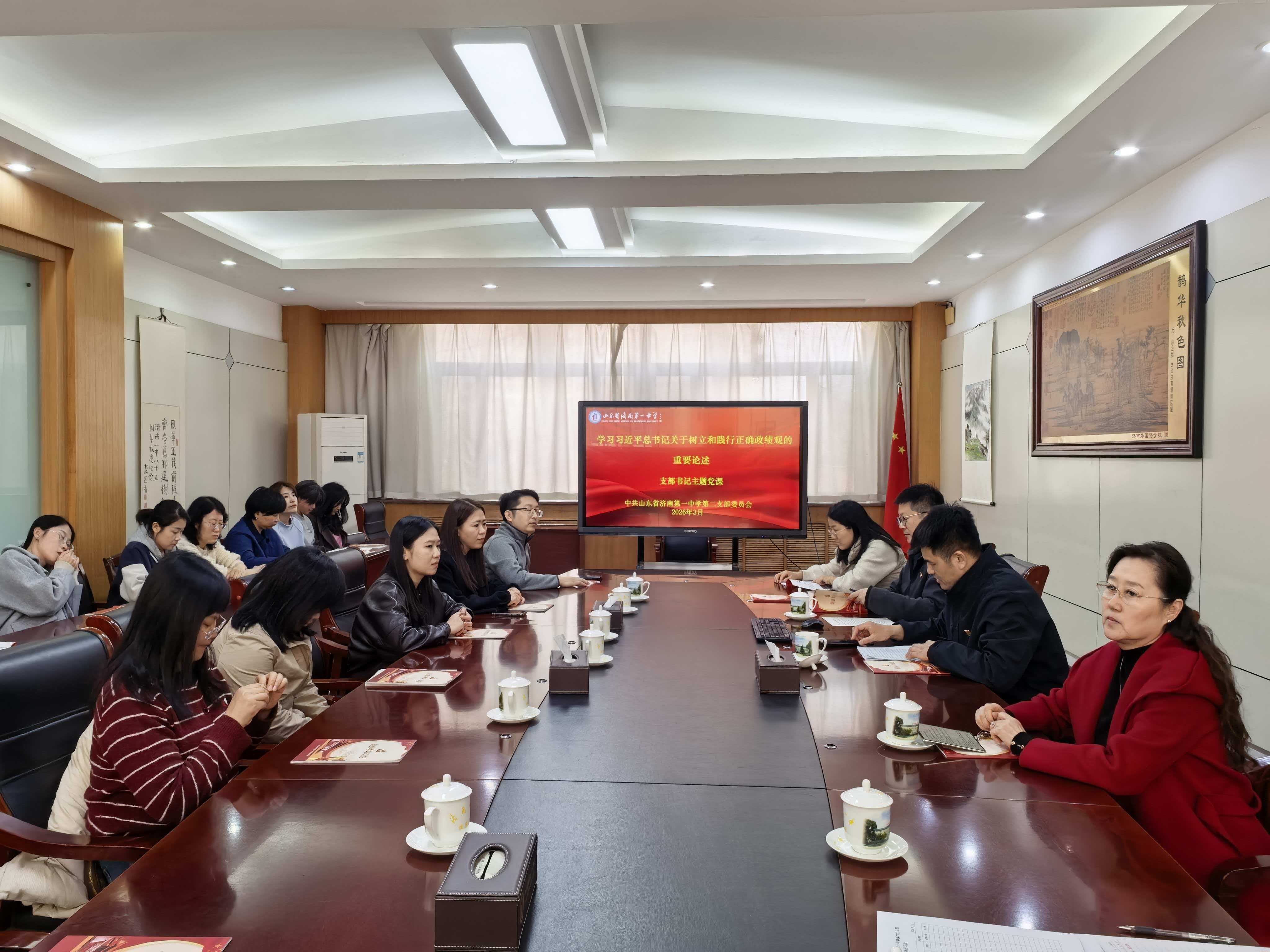 党支部书记周贤东为支部全体党员讲授专题党课,他引导党员教师深刻把握正确政绩观的核心要义,切实将学习成果转化为教育教学工作实效。