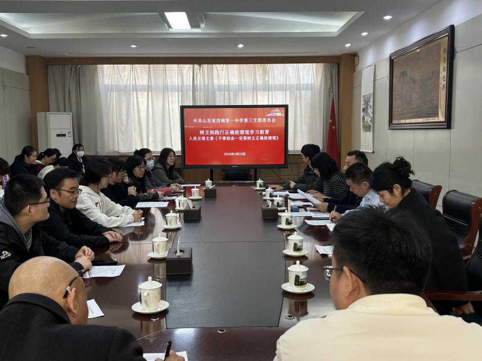 3月19日,济南一中第三党支部在弘德楼一楼会议室开展树立和践行正确政绩观学习教育,党支部书记陈兴华主持。