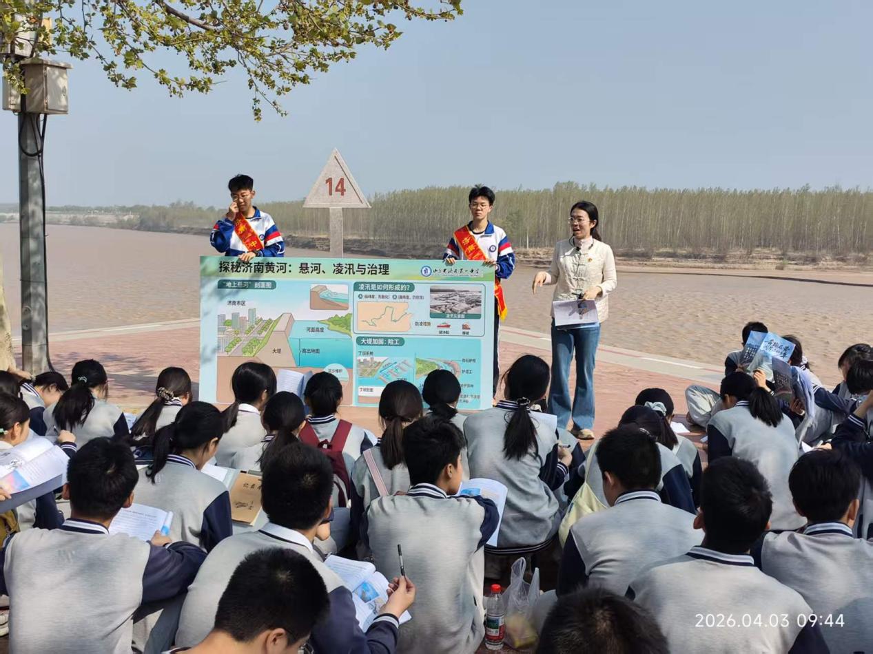 4月3日,济南一中组织师生开展“奔跑在黄河岸边的少年”黄河综合实践活动。活动以远足为纽带,将地理课、语文课、劳动课与黄河文化深度结合,让学生在行走中感悟文化、锤炼意志、收获成长。