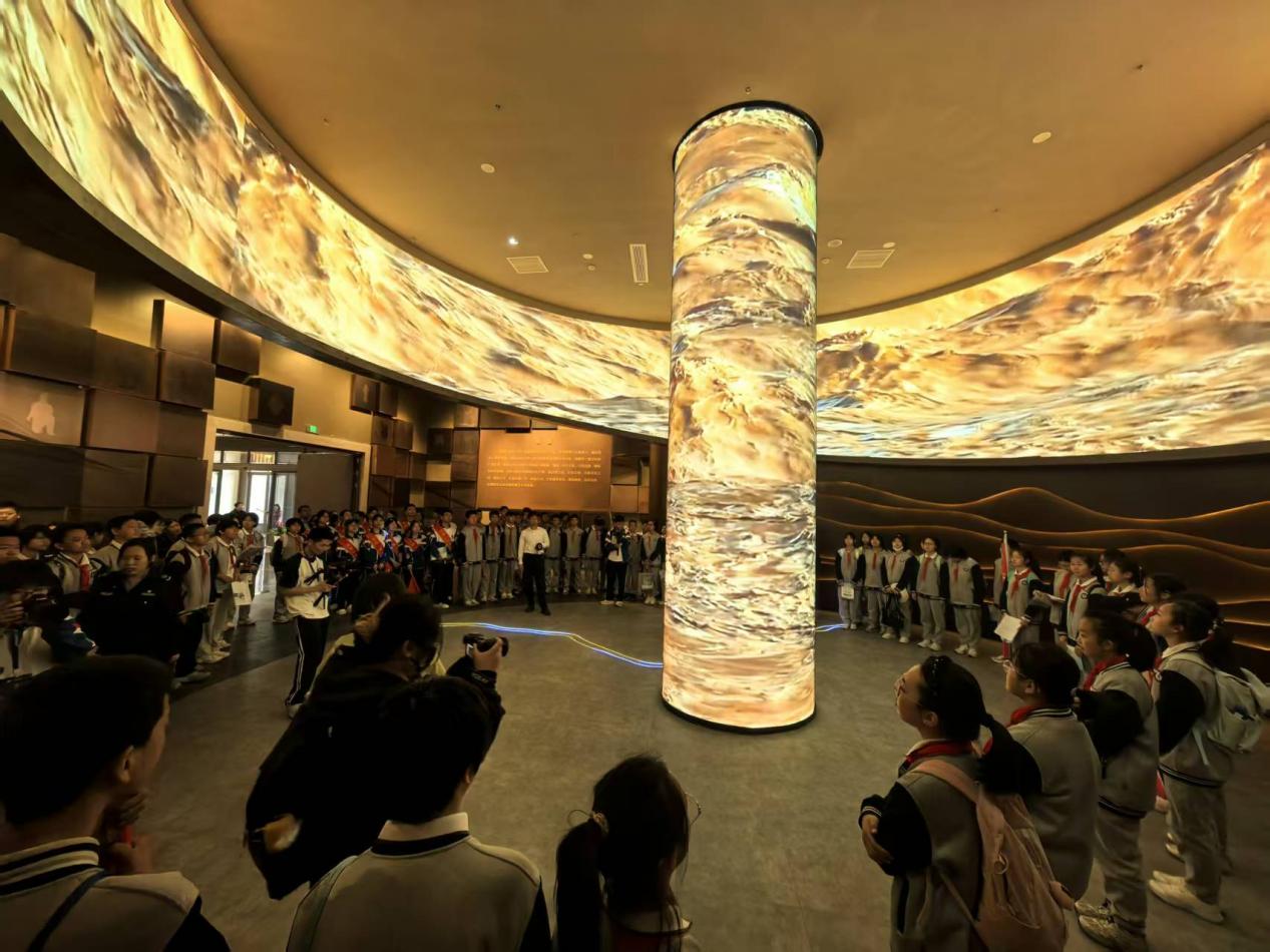 徒步途中,师生们走进黄河文化博物馆,开启文化探秘之旅。在自然黄河、人文黄河、安澜黄河、幸福黄河四个分馆,同学们认真聆听讲解,驻足观看展品,从黄河的自然地貌、历史变迁、人文底蕴到治理成就,全方位感受黄河母亲河的磅礴气势与深厚魅力,在潜移默化中厚植家国情怀。