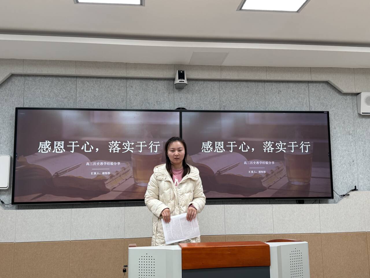 首先,姜莉传达市教研院历史学科教研要求与学校新学期工作计划。随后,高一备课组长王贝贝从上学期的总结、新学期进程规划及举措等方面分享教学经验;高二备课组长刘霞围绕回顾、反思、规划、提升,阐述提高历史教学质量的思路方法;高三褚彤彤老师介绍高三备课组工作成果与优异成绩,并分享冲刺备考策略。