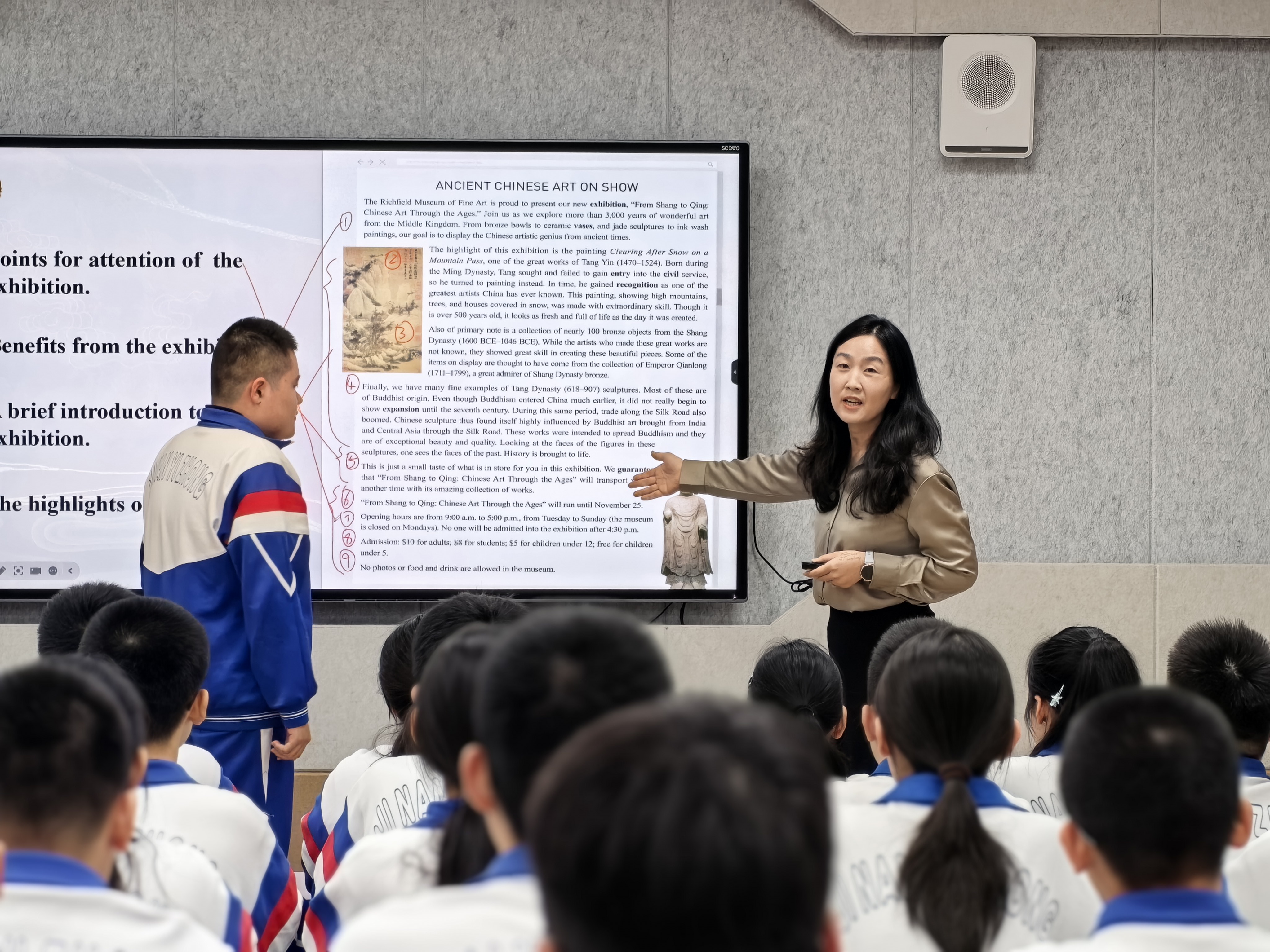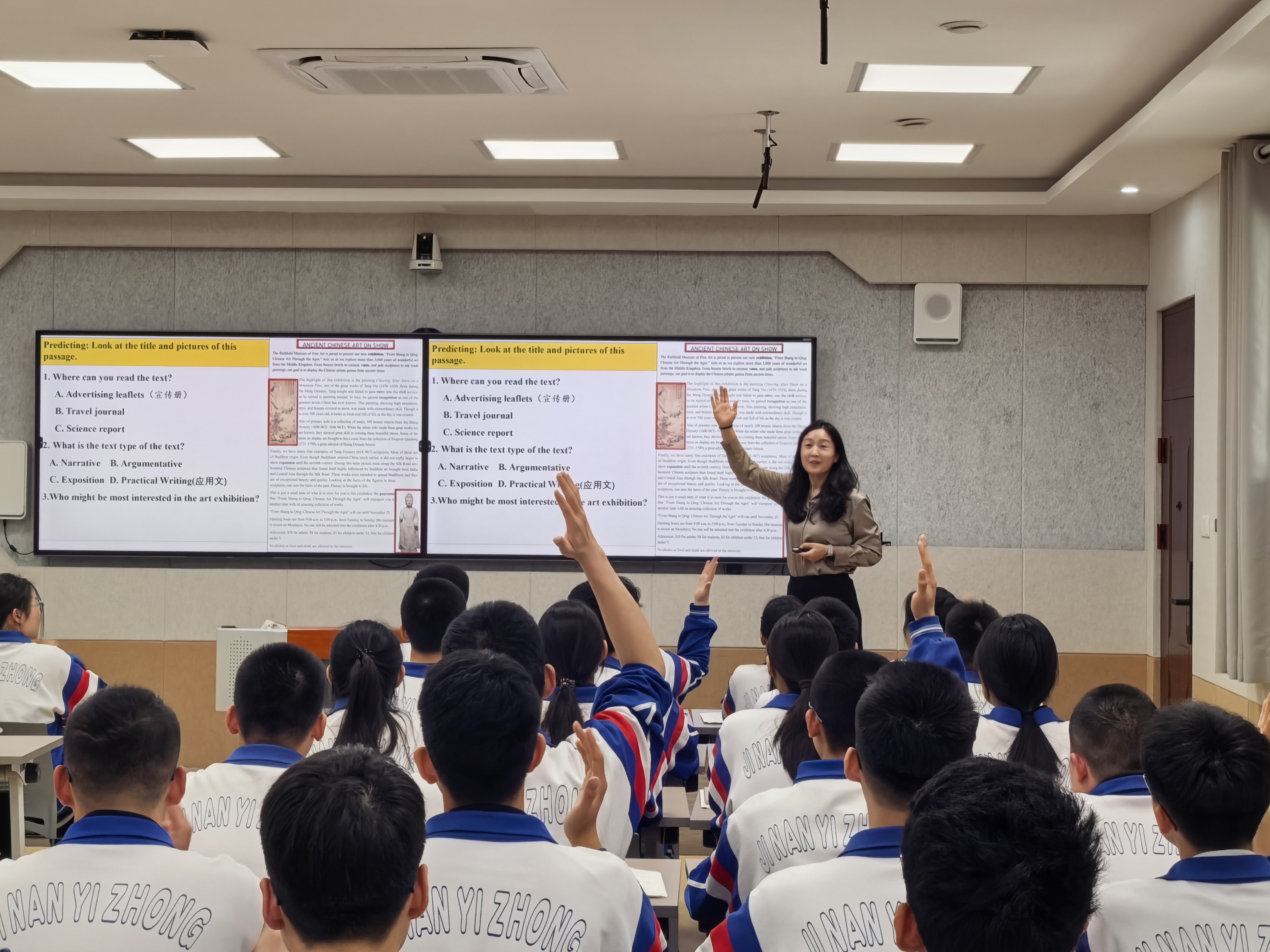 近日,英语教研组高二备课组长赵越执教《Write an Art Exhibition Announcement》读写示范课,“科技赋能+家国情怀”创新课堂获得一致好评。