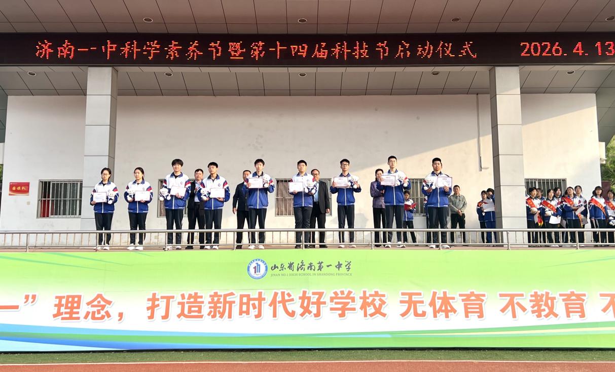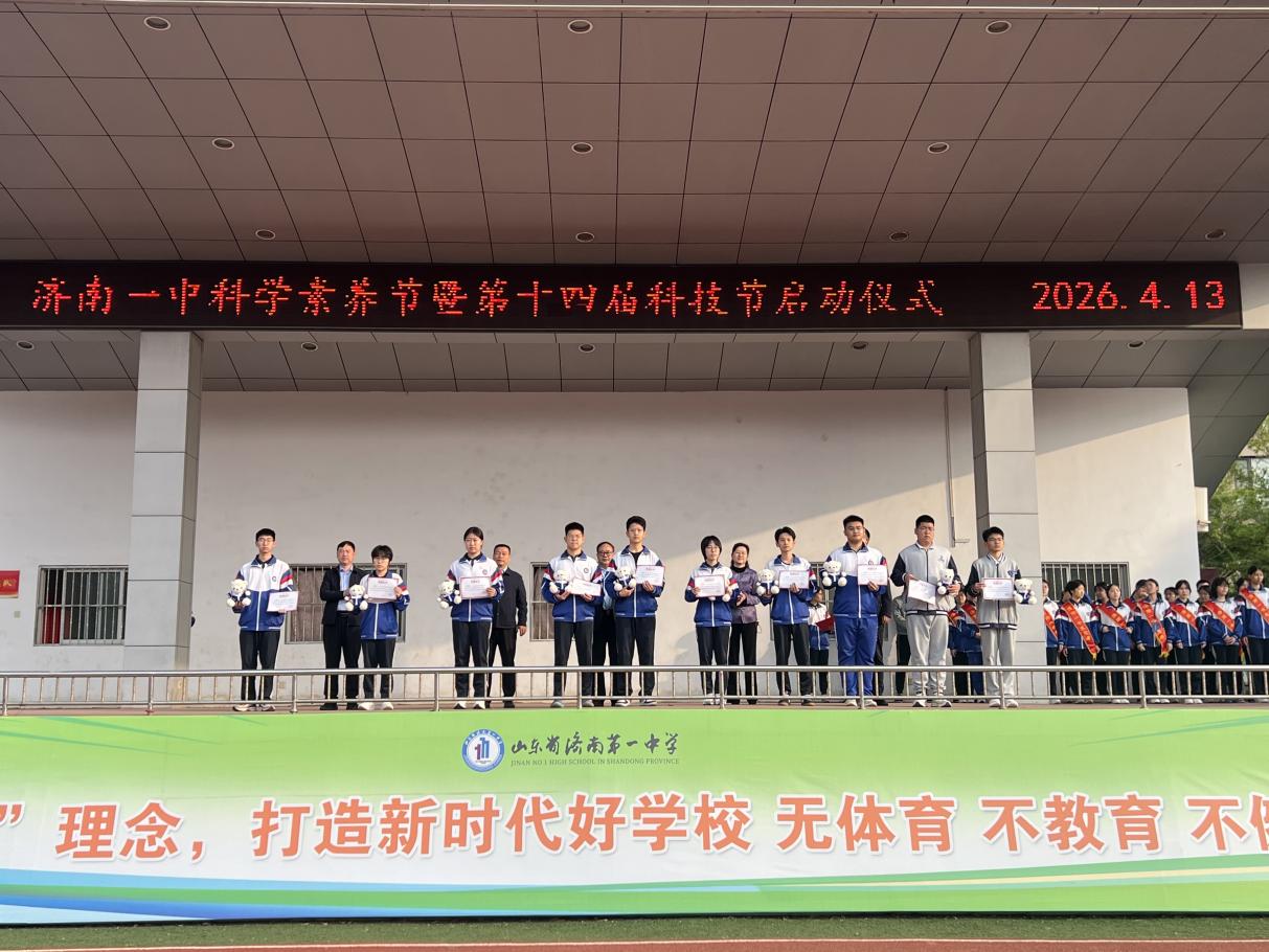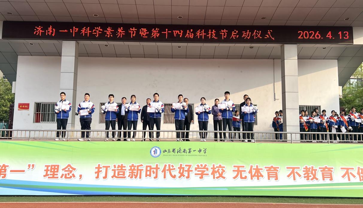 4月13日上午,济南一中结合升旗仪式,在学校操场举行2025年度“科技达人奖”表彰大会暨第十四届“智启青春·创享未来”科技节启动仪式,全体师生参加活动。