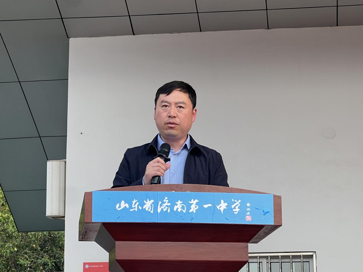 济南一中教学部主任张远杰以“智启青春 创享未来”为主题发言,结合获奖学生科创经历,阐述创新与实践的意义。。