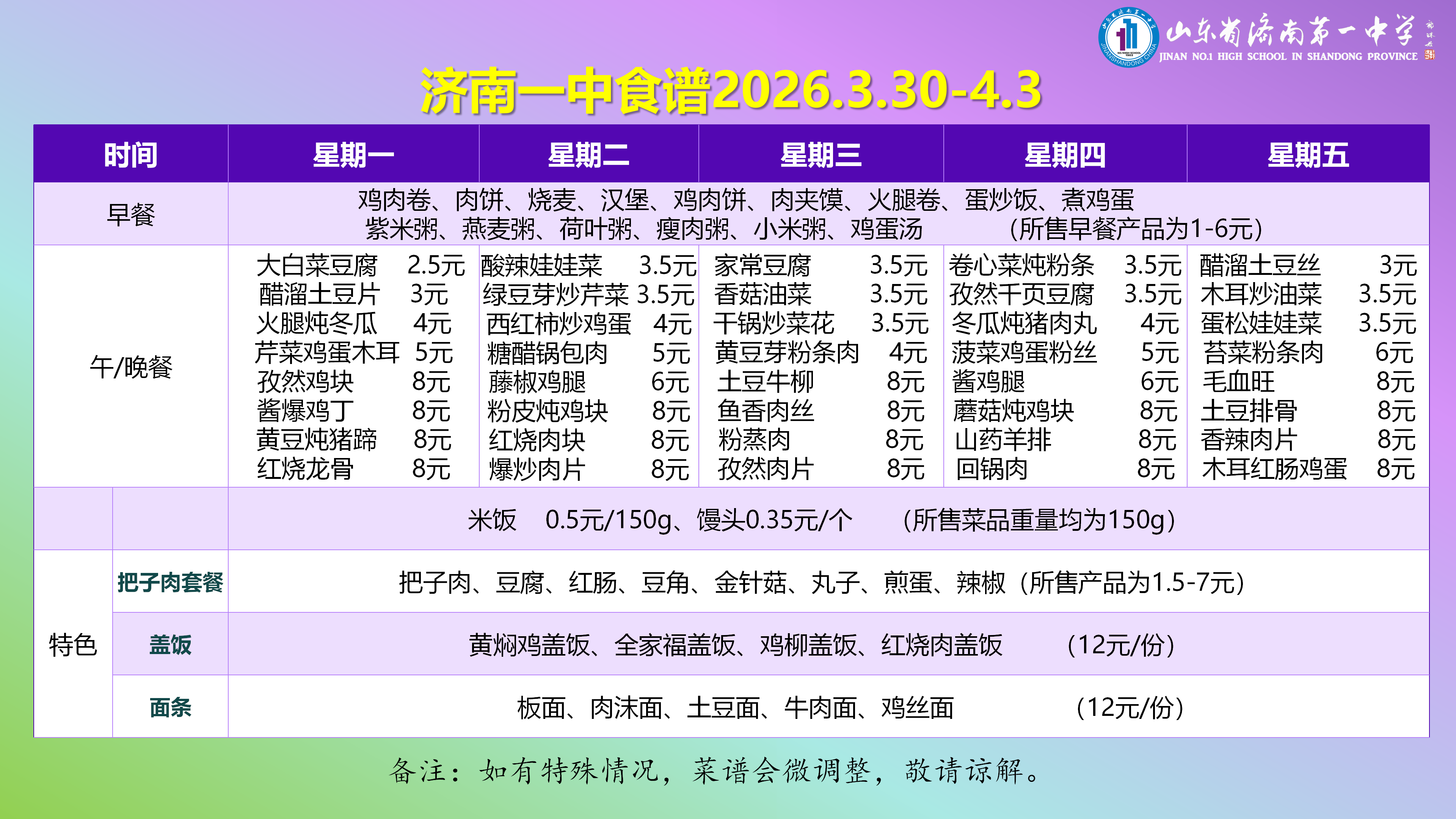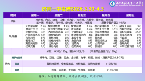 济南一中食谱2026.3.30-4.3