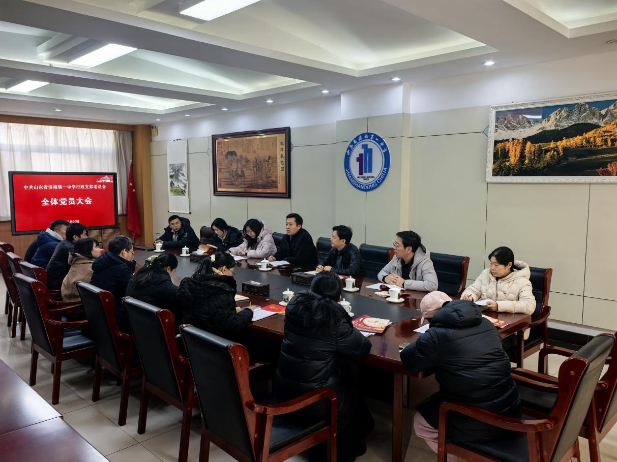 1月20日,济南一中行政党支部在弘德楼一楼会议室召开党员大会,深入学习贯彻党的二十届四中全会精神,党支部书记隋顺东主持。