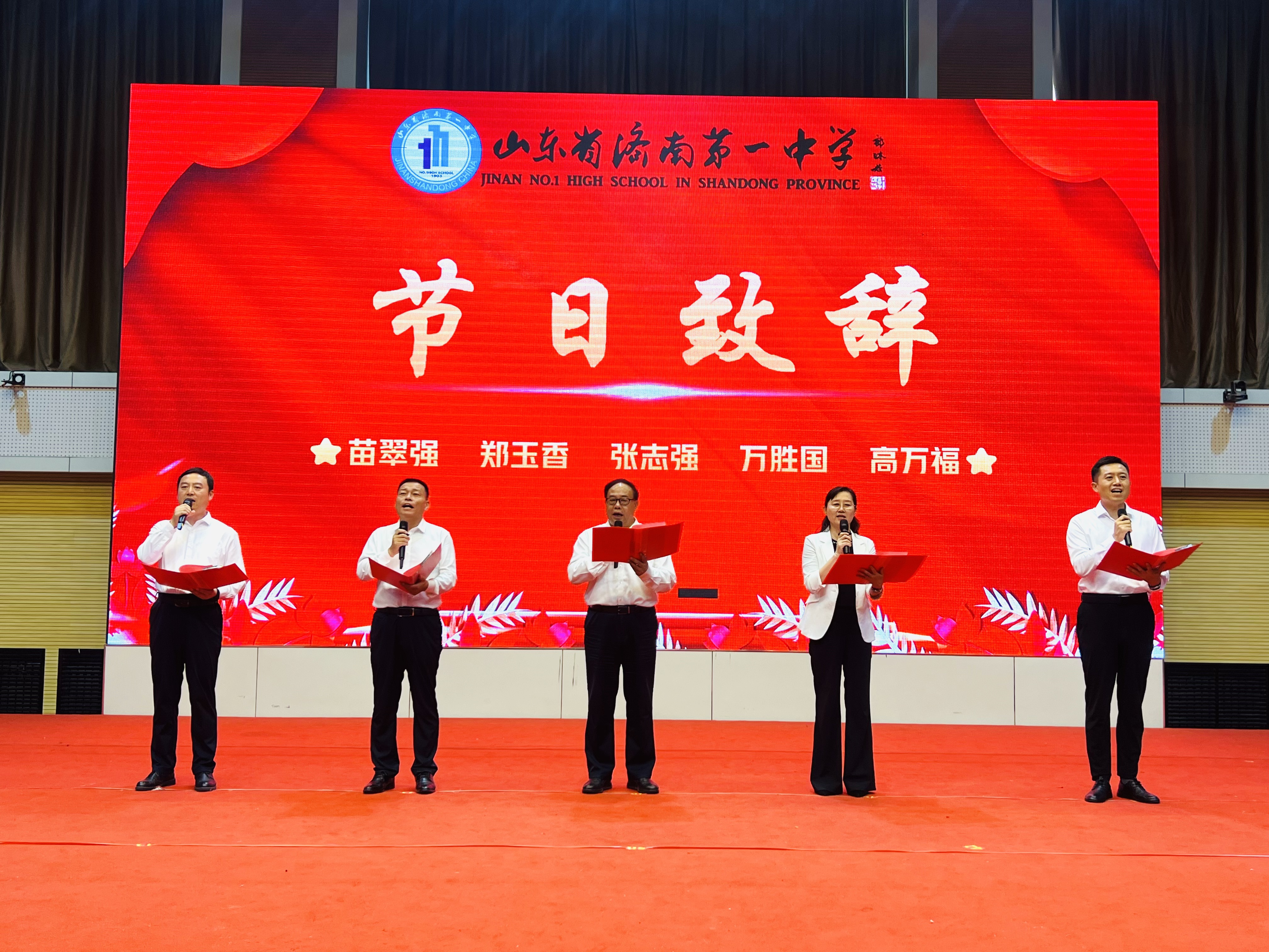 9月9日下午,济南一中“以教育家精神铸魂强师,谱写教育强国建设华章”教师节庆祝大会在学校体育馆多功能厅举行。学校领导班子、全体教职员工及学生代表齐聚一堂,共同庆祝第41个教师节。