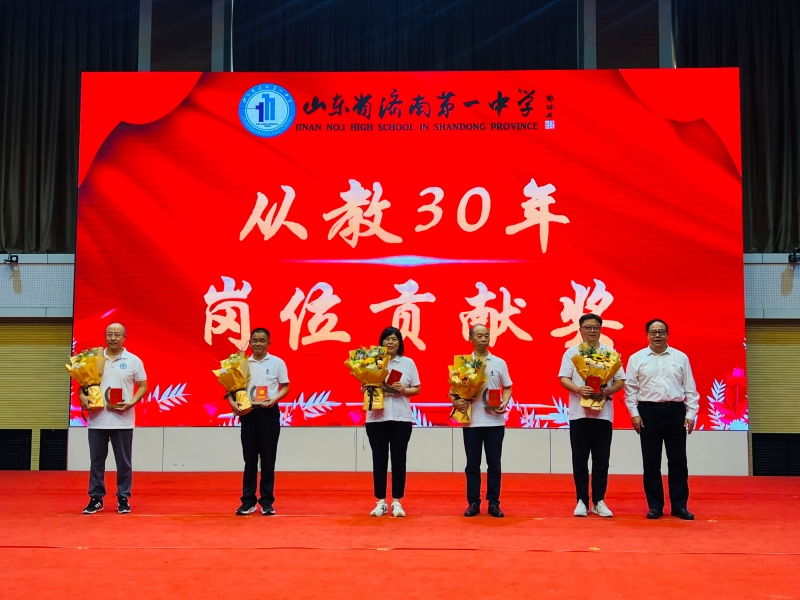 从教三十年是职业生涯的重要节点。校长苗翠强为今年工作满三十周年的五位教师颁发纪念奖杯和证书,致敬他们对教育事业的坚守。