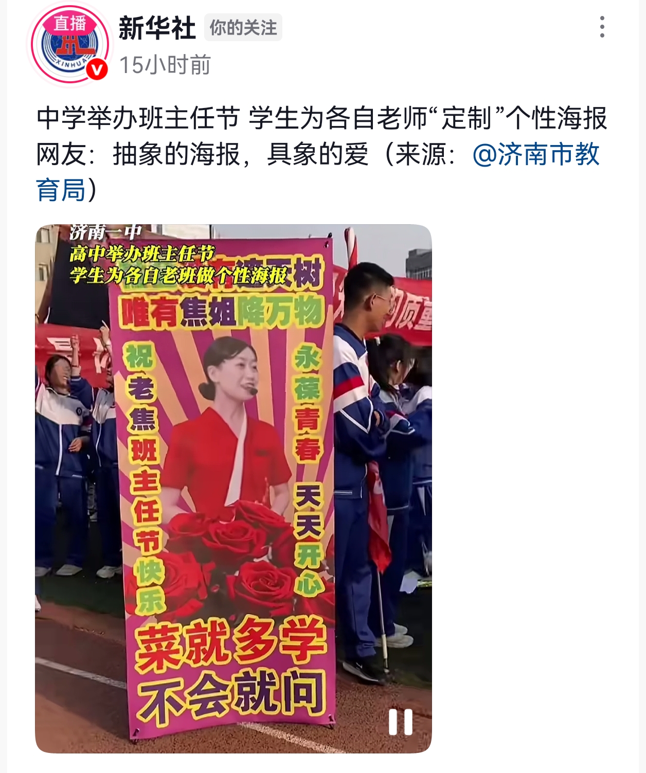 8.班主任育人智慧和管理艺术持续提升。举办第十四届班主任节,搭建师生互动平台,提升教师育人本领。近10家央媒进行宣传报道,新华社半月谈撰文《“老班”,学生给你做了“广告单”》,点赞学校和谐共生的新型师生关系。