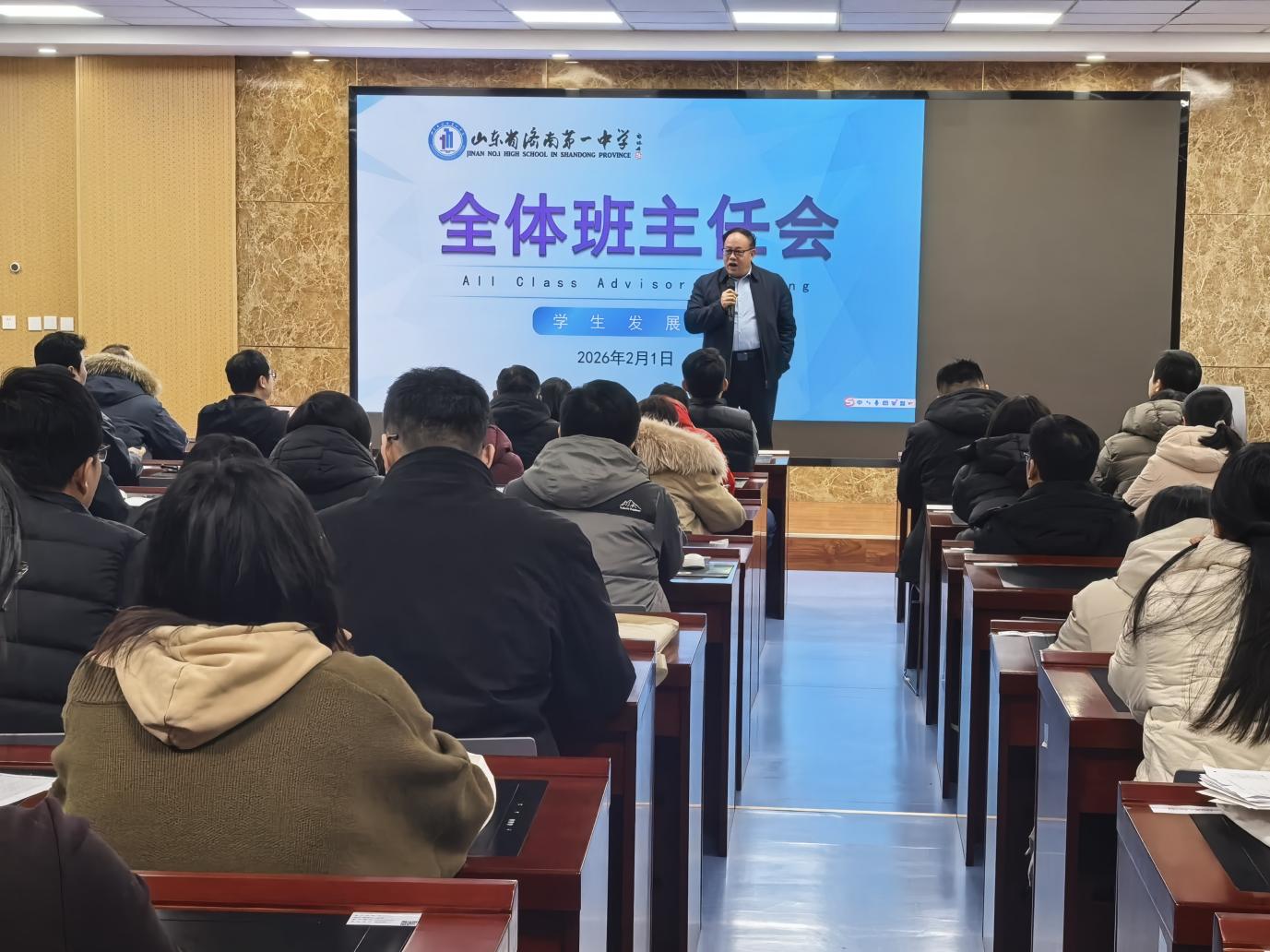 近日,济南一中召开全校班主任工作会议,安排部署期末和寒假各项工作。学生发展部主任马营主持。