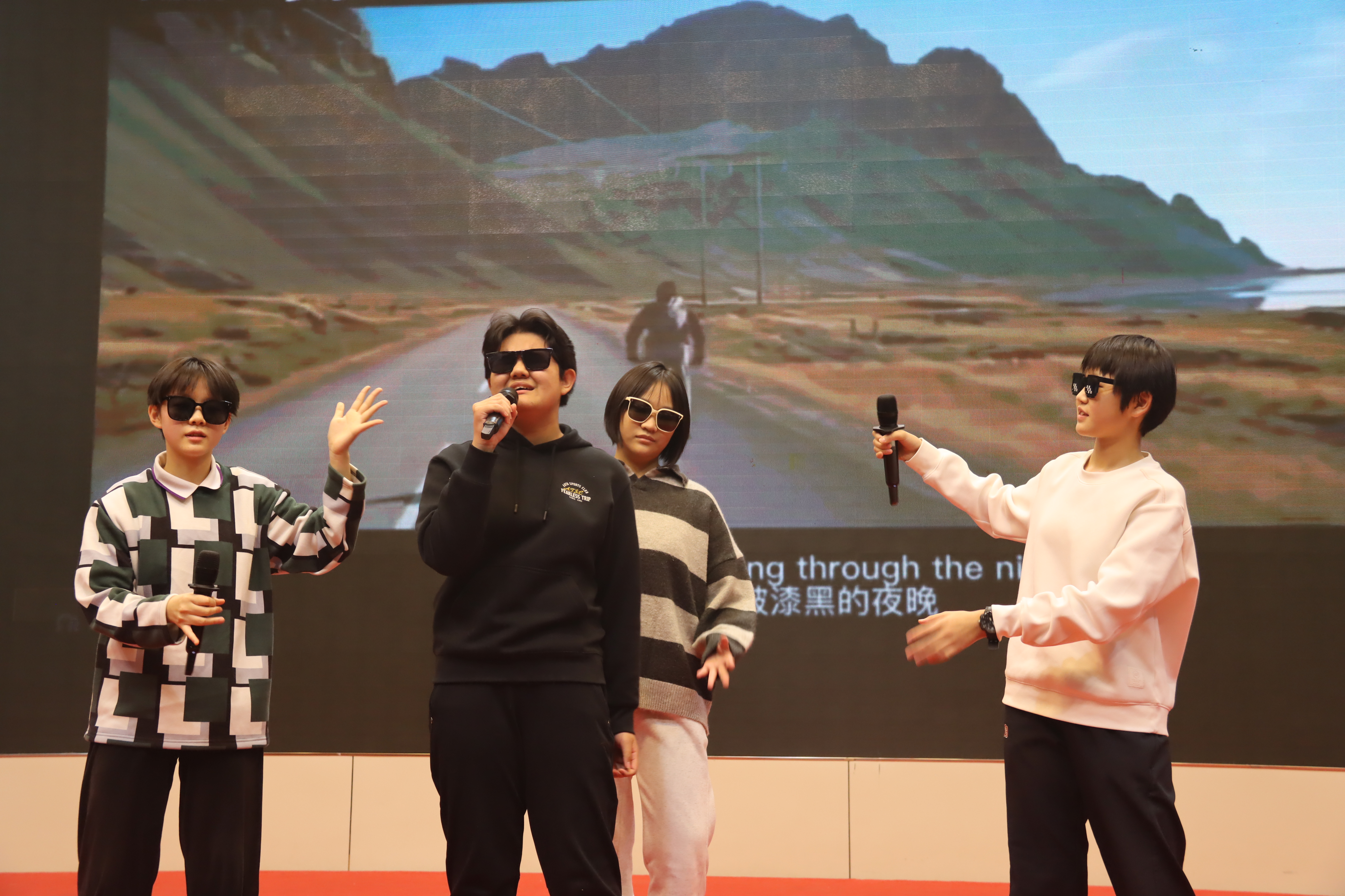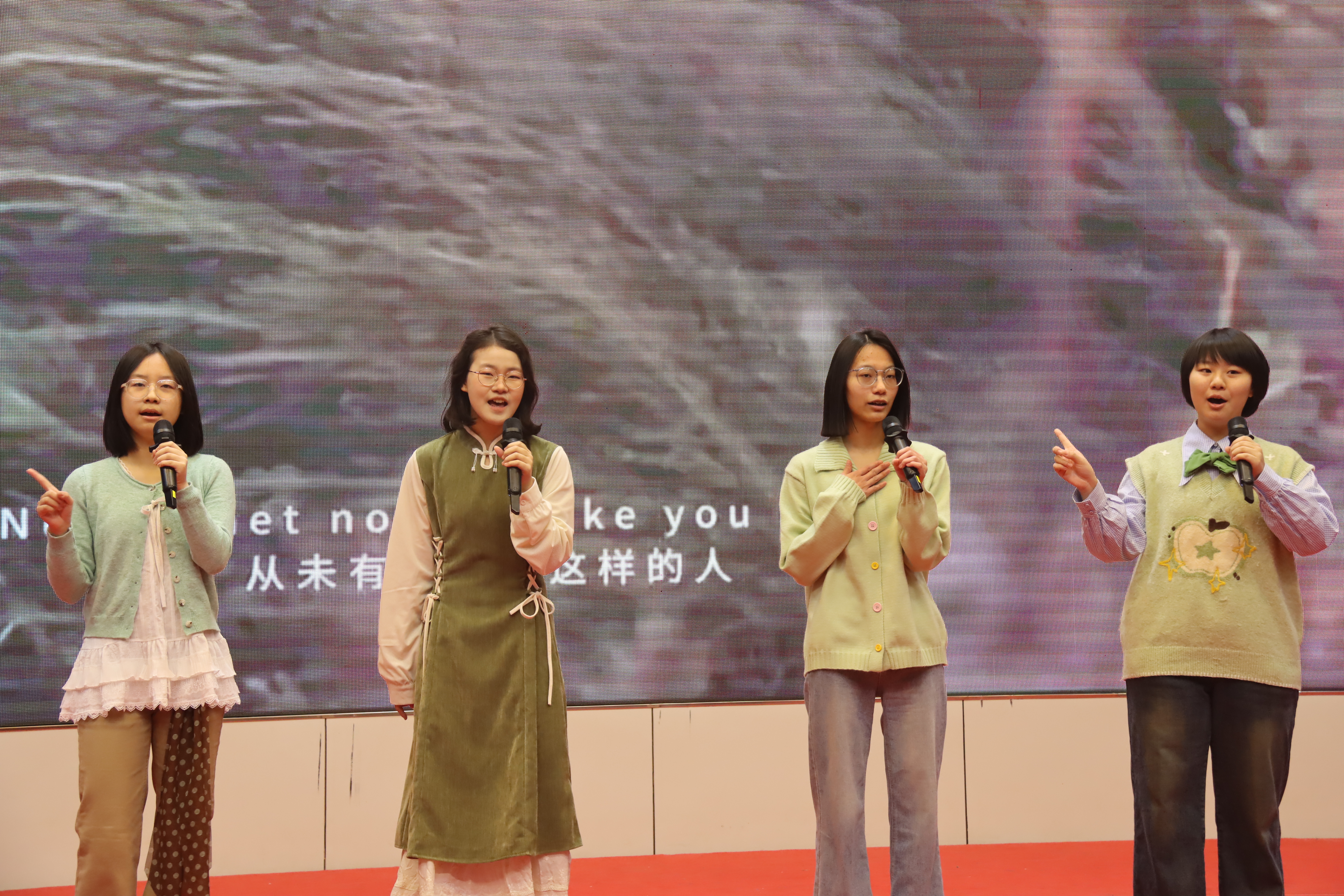 作为压轴环节,歌唱环节将现场氛围推向高潮。8 个参赛节目风格多元、各具特色,初一 1 班带来的《Lemon Tree》活力四射、轻松欢快,初二 3 班演唱的《Wake》节奏昂扬、激情澎湃,引发全场师生共鸣,共同合唱,歌声响彻整个体育馆。