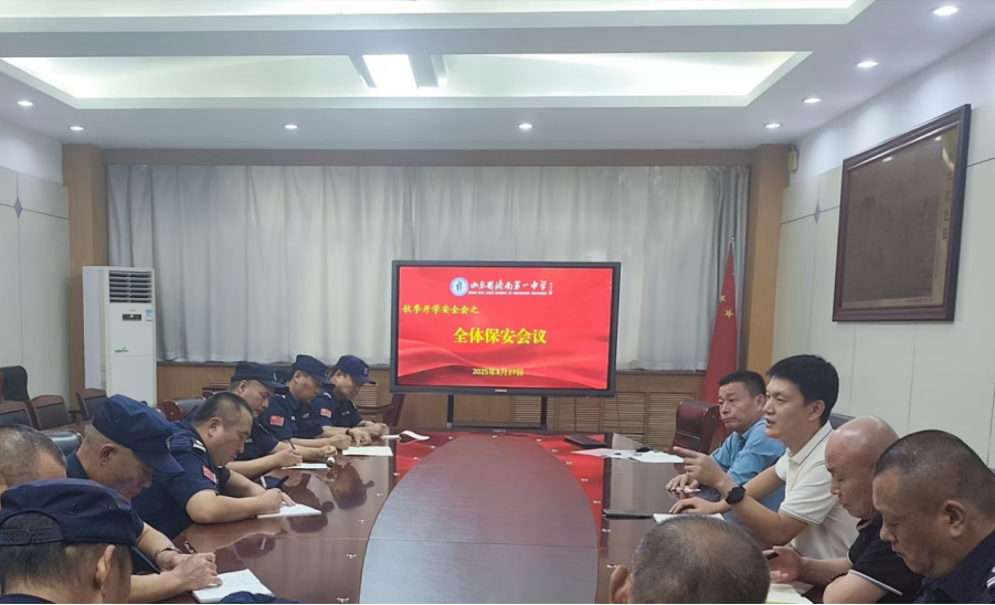 为确保新学期校园安全稳定,切实筑牢第一道防线,济南一中于秋季开学前组织召开全体保安人员工作会议。会议进一步明确了岗位职责,细化了工作流程,为平安校园建设提供坚实保障。副校长张志强、安全保卫部副主任褚彤彤以及全体保安人员参加,安全保卫部主任张鹏主持。