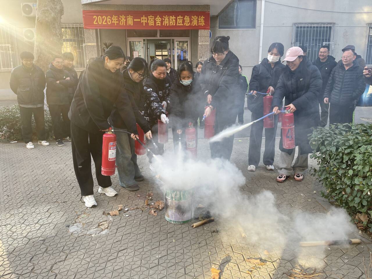 本次演练组织严密、注重实效,进一步检验了宿舍消防应急预案的可行性,切实提升了生活老师的消防技能与协同处置能力,筑牢了校园安全防线。