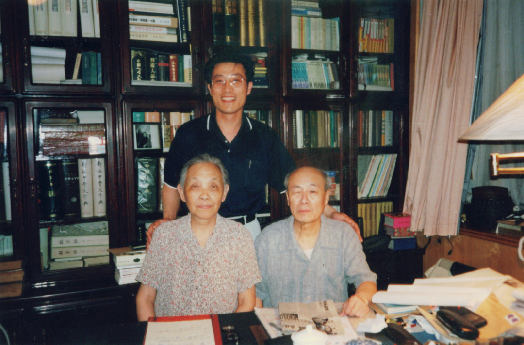 廿世纪九十年代笔者在欧阳中石先生、张茝(chǎi)京先生夫妇书房合影。