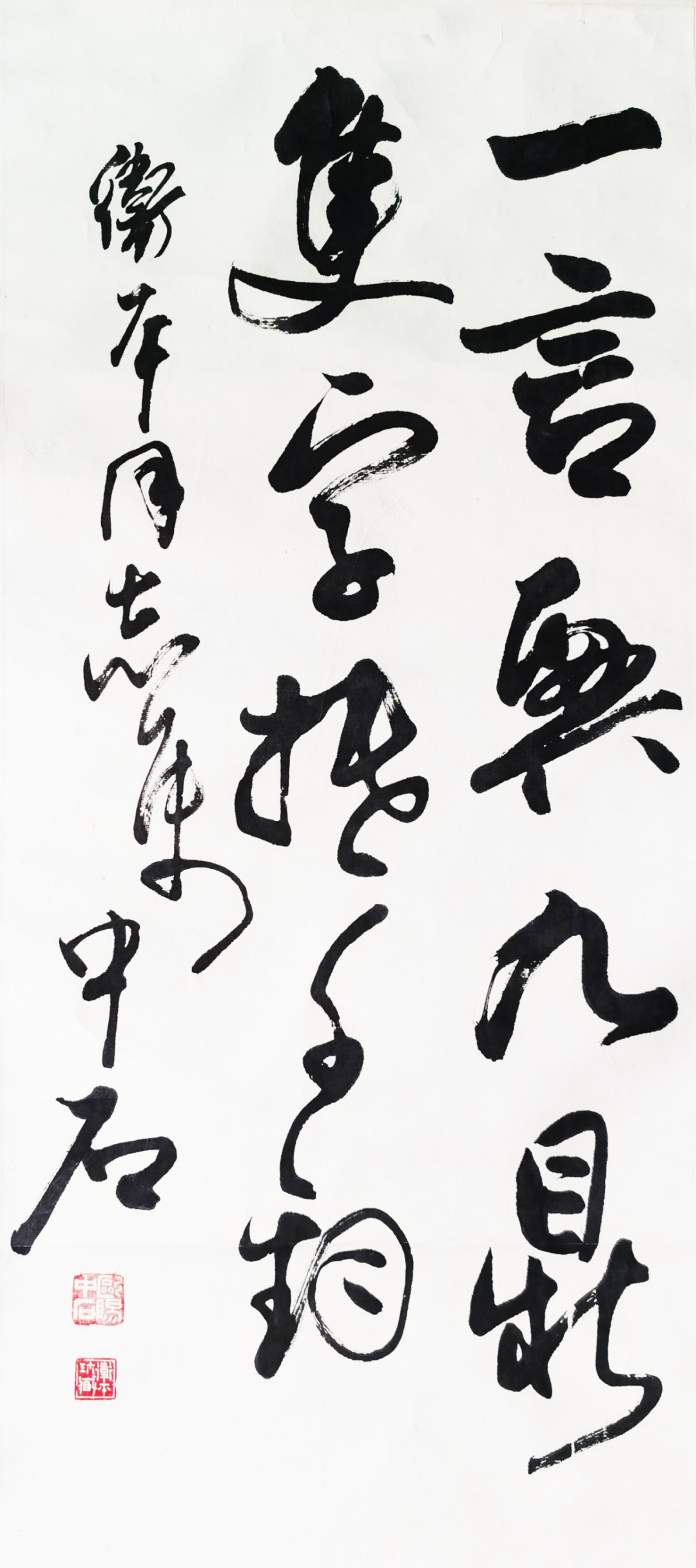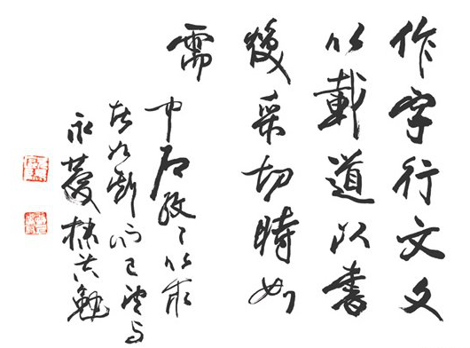 他在多种场合阐发并多次题写过的自己经过长期实践总结出的书学理念:“作字行文,文以载道,以书焕彩,切时如需。”