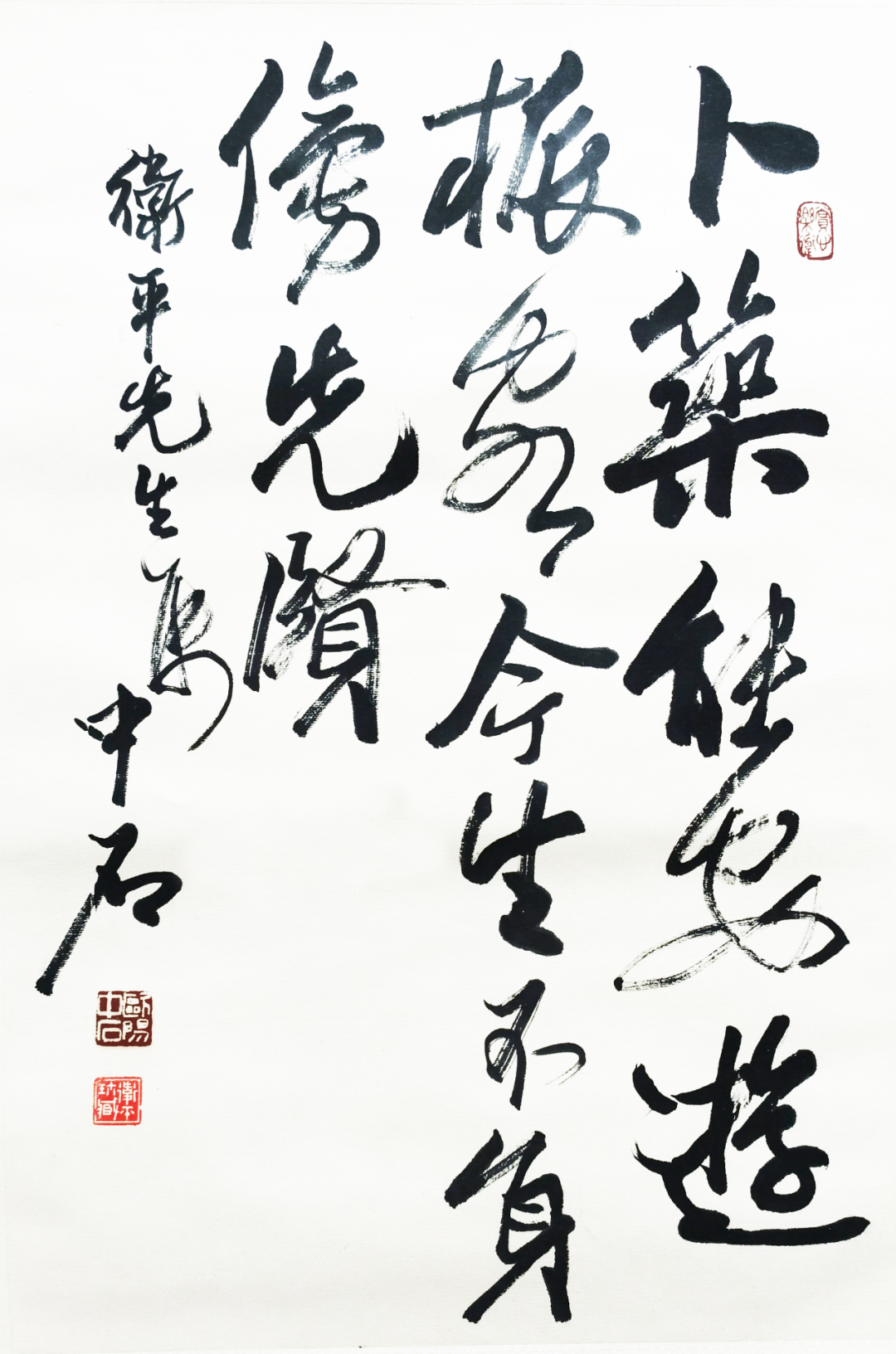 欧阳中石先生1985年题赠:一言兴九鼎,只字抵千钧。