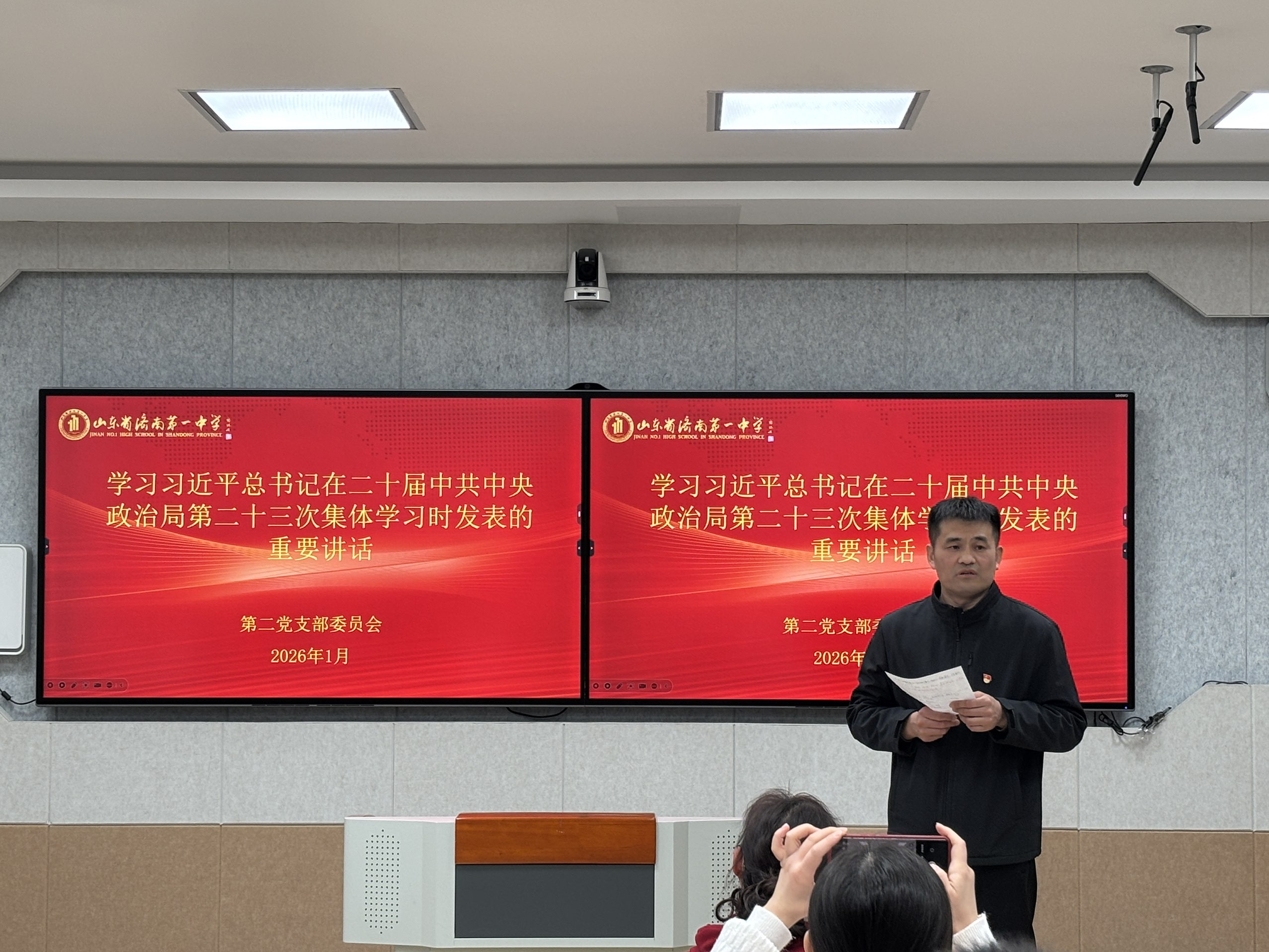1月21日,济南一中第二党支部在知新楼三楼中厅录播室召开全体党员大会,专题学习习近平总书记在二十届中共中央政治局第二十三次集体学习时发表的重要讲话精神,并围绕党员教师师德师风建设与网络素养提升、舆情应对能力开展专题培训。
