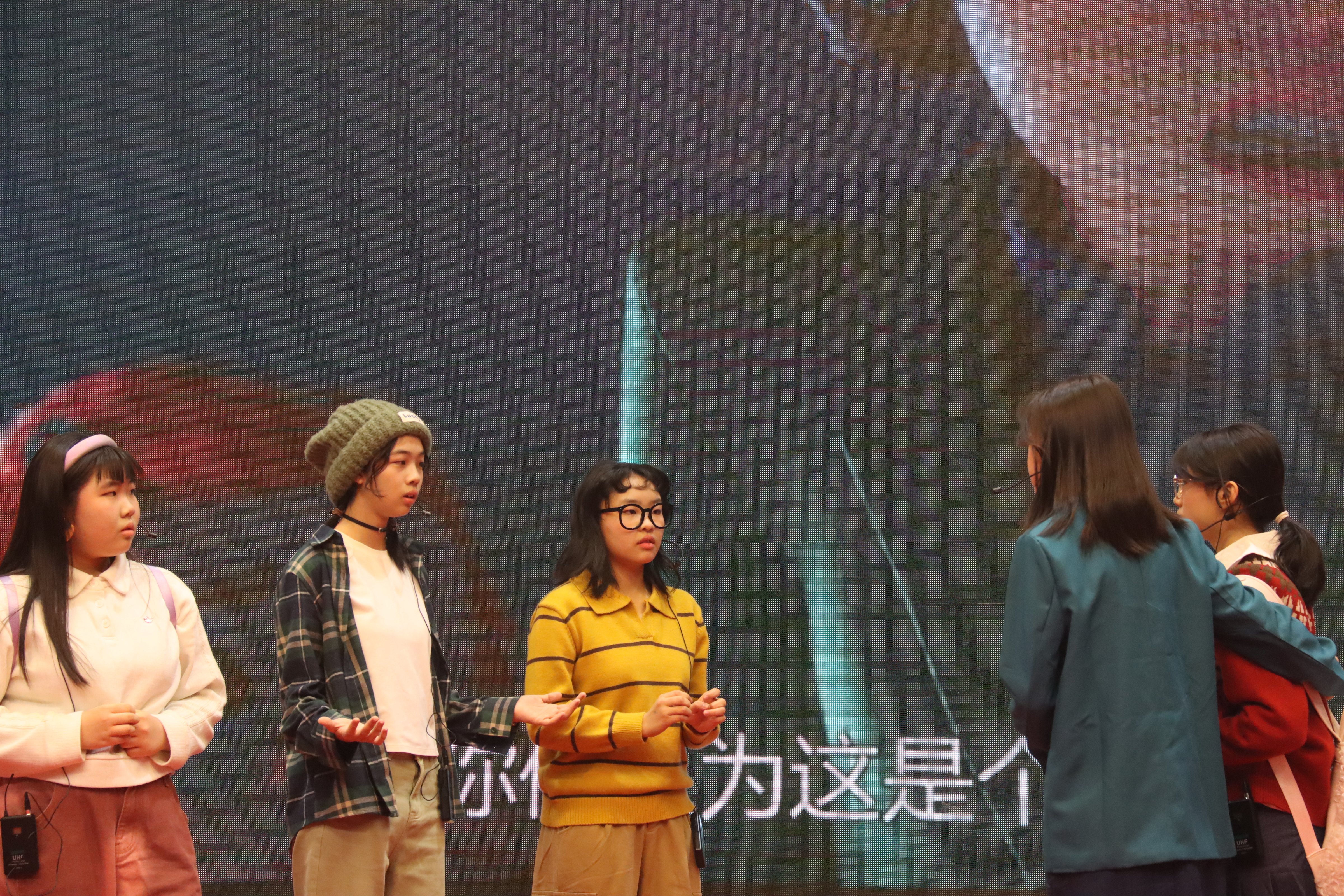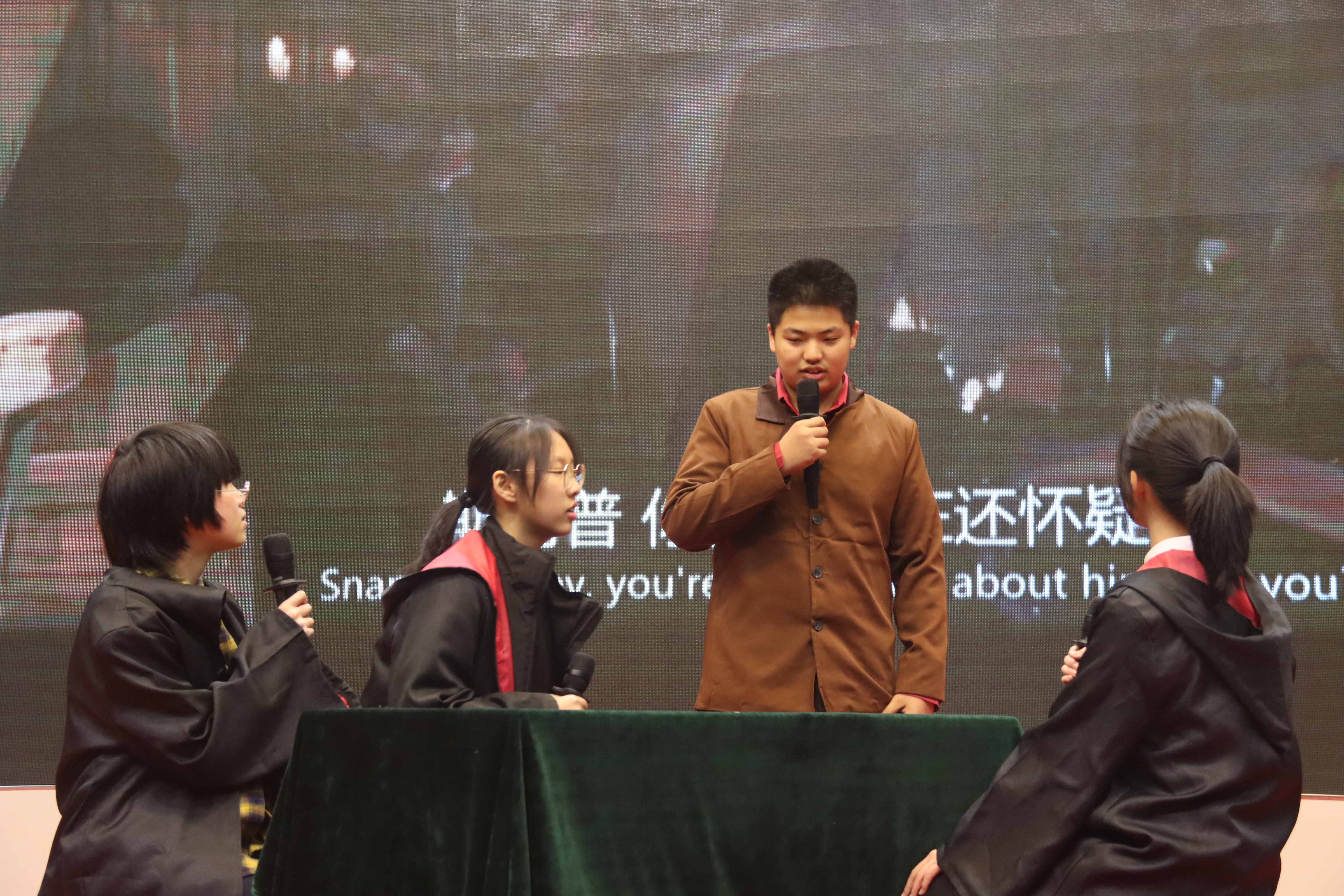 配音环节创意迭出、亮点频现。初三 1 班、2 班的同学们默契协作,精彩还原《哈利・波特》经典影视片段;初二 3 班董馨媛实力出众,一人分饰多角演绎《后妈茶话会》,表演富有张力、感染力十足,赢得现场师生的阵阵掌声与一致好评。