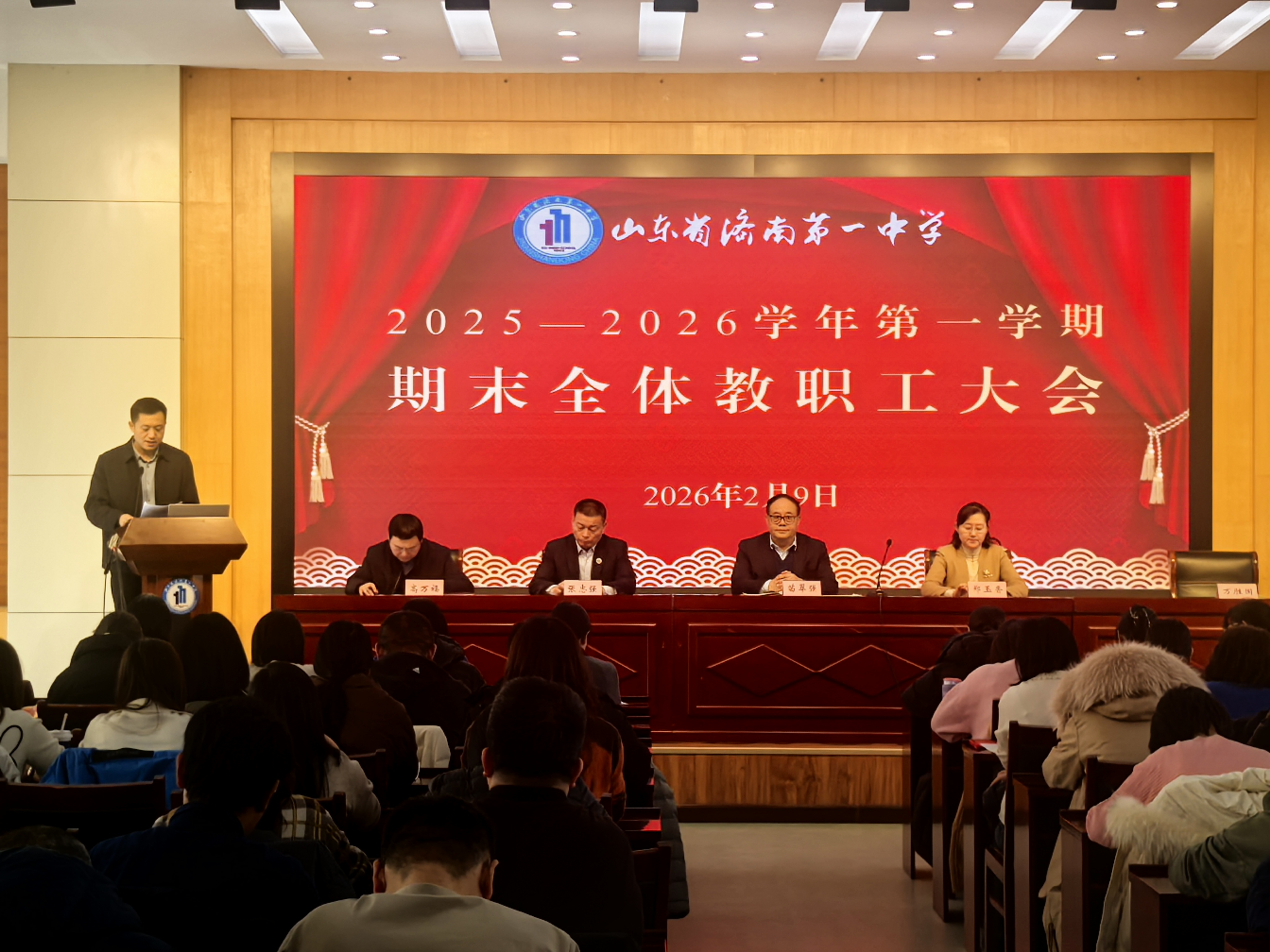 2月9日,济南一中在悦知楼三楼报告厅召开2025-2026学年第一学期期末全校教职工大会,全体教职工齐聚一堂,共同回望2025年的奋斗足迹,展望2026年的崭新征程。大会由党委书记郑玉香主持。
