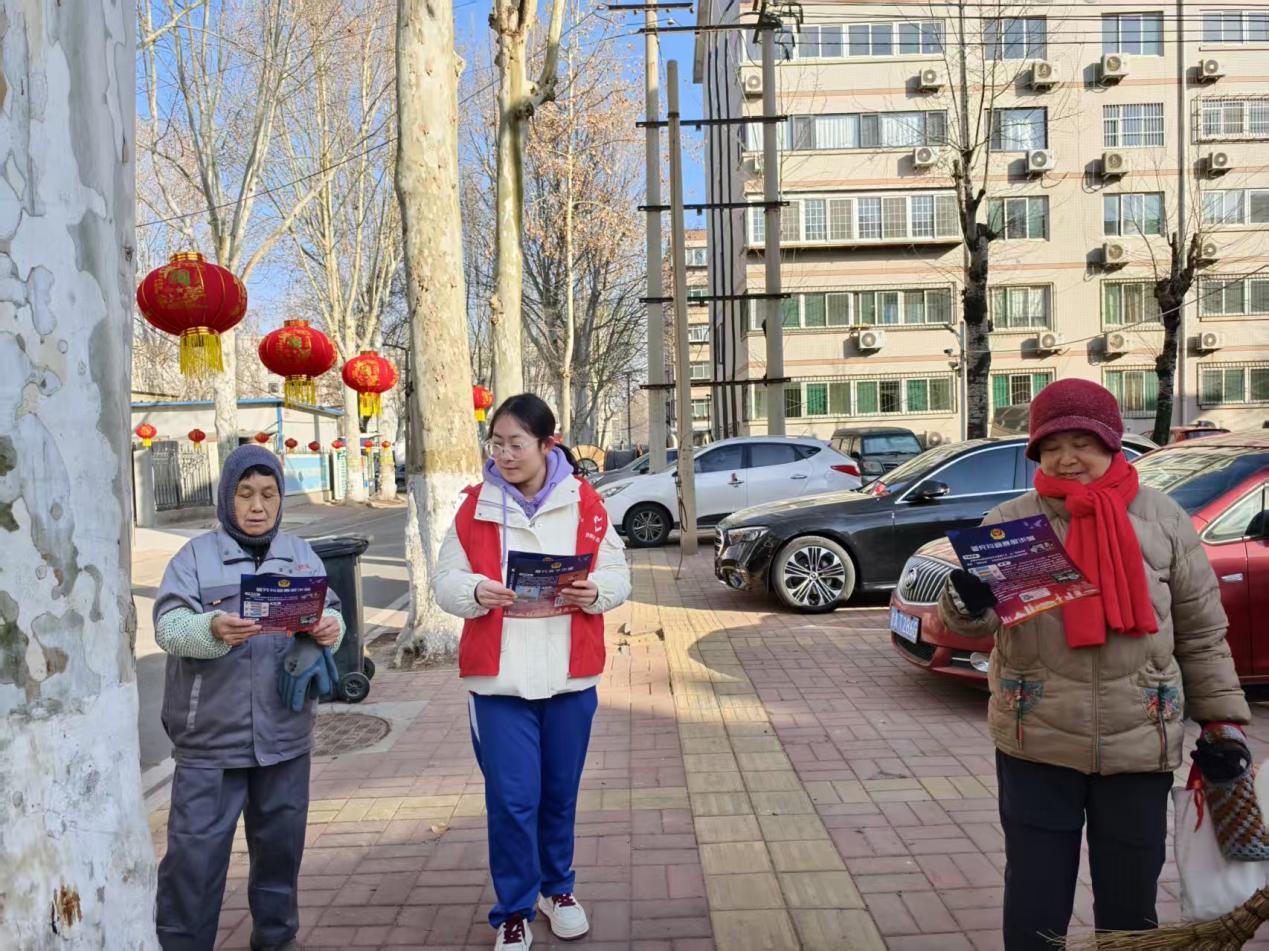 禁放巡查组的同学们顶着寒风,对小区及沿街商铺进行动态巡查,及时发现并劝阻违规燃放苗头;他们向居民发放《禁燃禁放倡议书》,耐心讲解燃放烟花爆竹对空气环境、人身安全的危害,引导大家自觉遵守禁放规定,选择文明、绿色方式欢度佳节。与此同时,反诈宣传组的同学们结合近期高发的电信网络诈骗典型案例,用通俗易懂的语言向居民尤其是老年群体普及识诈防诈技巧,帮助居民增强防范意识。活动将安全管控与反诈防线有机结合,实现了“一次入户、双重宣传”的良好效果。